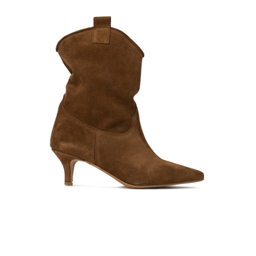 Texano basso a punta accollato alla caviglia, il leggero scollo a V allunga e slancia...