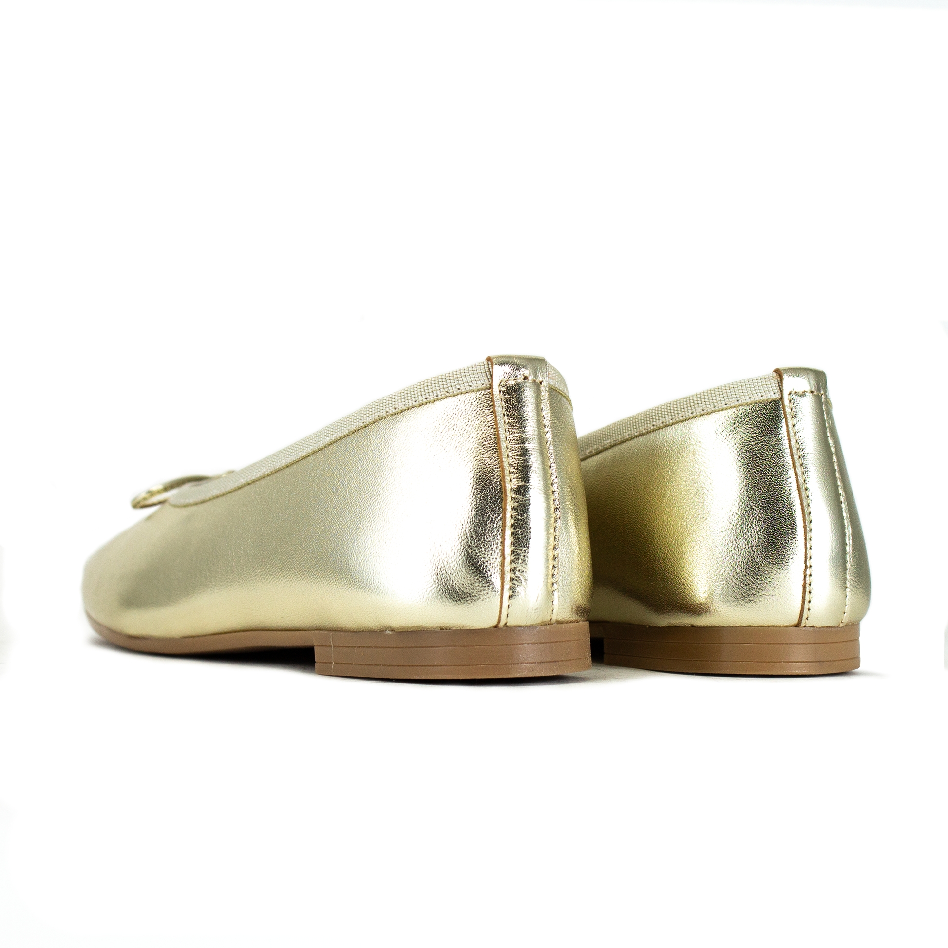La ballerina Bruna combina la pulizia del design "a guanto" con una finitura laminata sofisticata. Realizzata in pelle morbidissima, questo modello si distingue per lo scollo accollato che avvolge il piede con delicatezza, offrendo una silhouette moderna grazie alla punta leggermente squadrata.