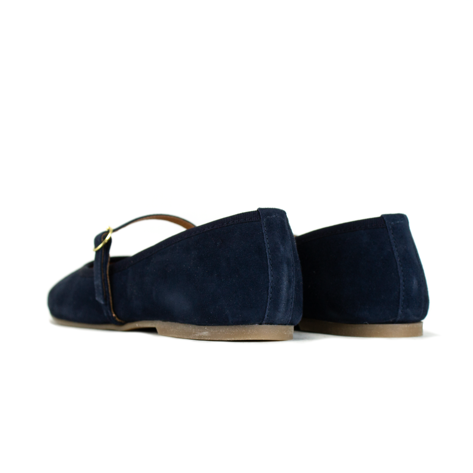 Il laccino con fibbia metallica permette di adattare la chiusura alla conformazione del proprio collo del piede, evitando che la scarpa scalzi durante la camminata. Una forma contemporanea che offre maggiore spazio e libertà di movimento alle dita rispetto alle punte strette. Il camoscio selezionato è estremamente flessibile, permettendo alla ballerina di piegarsi assecondando il movimento naturale del piede.