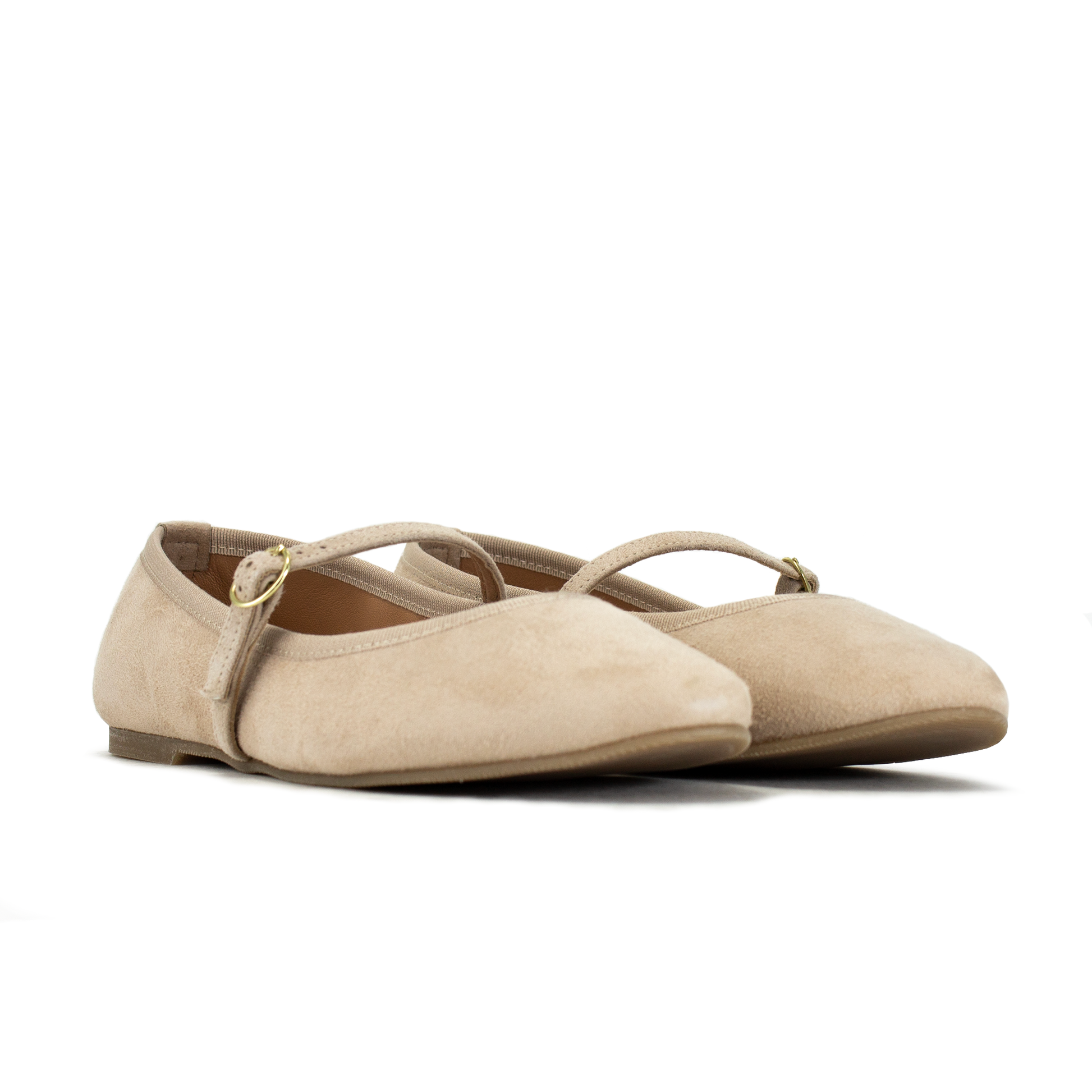 Il laccino con fibbia metallica permette di adattare la chiusura alla conformazione del proprio collo del piede, evitando che la scarpa scalzi durante la camminata. Una forma contemporanea che offre maggiore spazio e libertà di movimento alle dita rispetto alle punte strette. Il camoscio selezionato è estremamente flessibile, permettendo alla ballerina di piegarsi assecondando il movimento naturale del piede.
