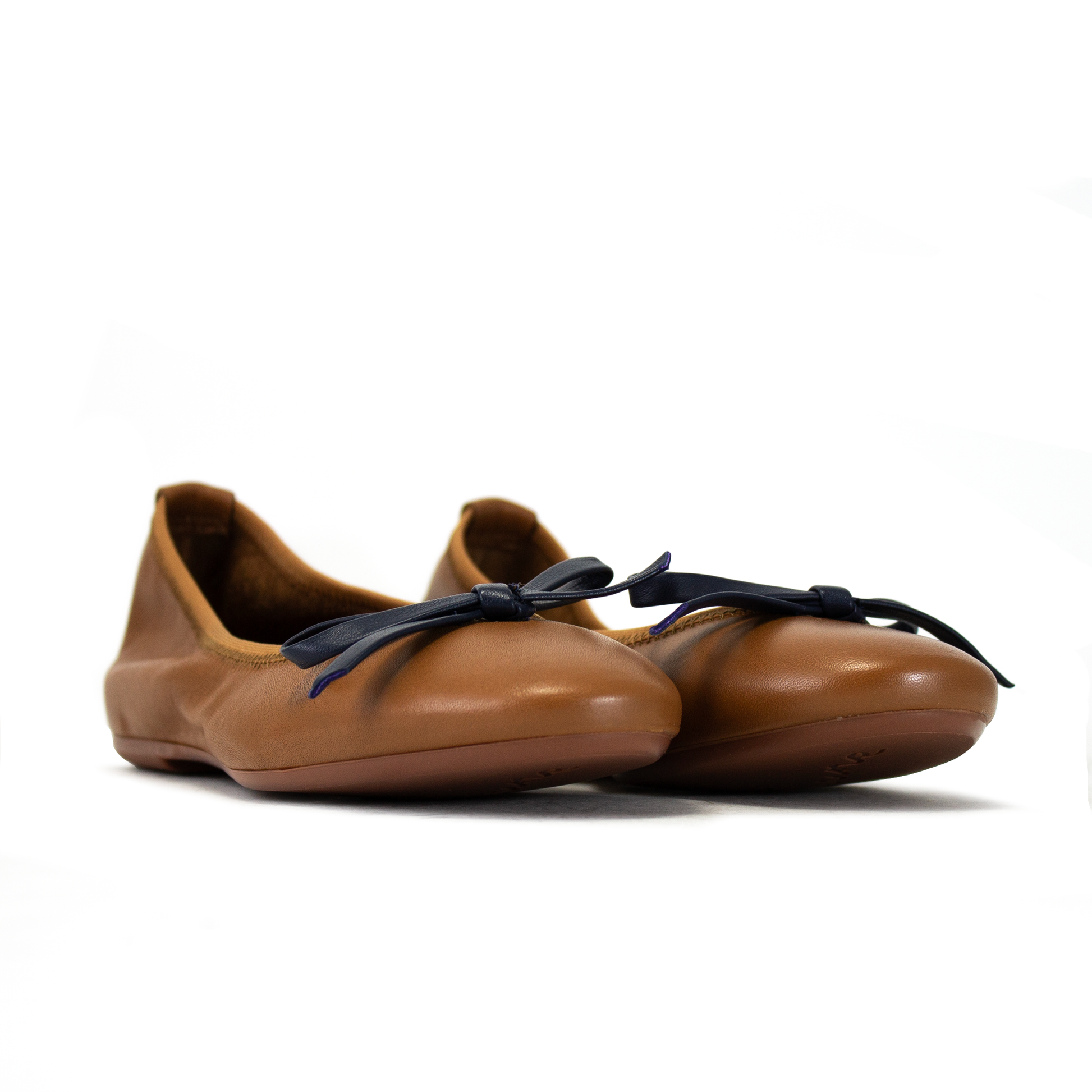 Un tocco di eleganza e comfort per ogni passo! Questa ballerina con fiocchino piatto blu a contrasto è realizzata in pelle crosta morbidissima, con un design accollato ed elastico per una calzata perfetta. La suola in gomma antiscivolo assicura stabilità, mentre la mini zeppa interna regala un leggero rialzo per un comfort extra senza rinunciare allo stile.
