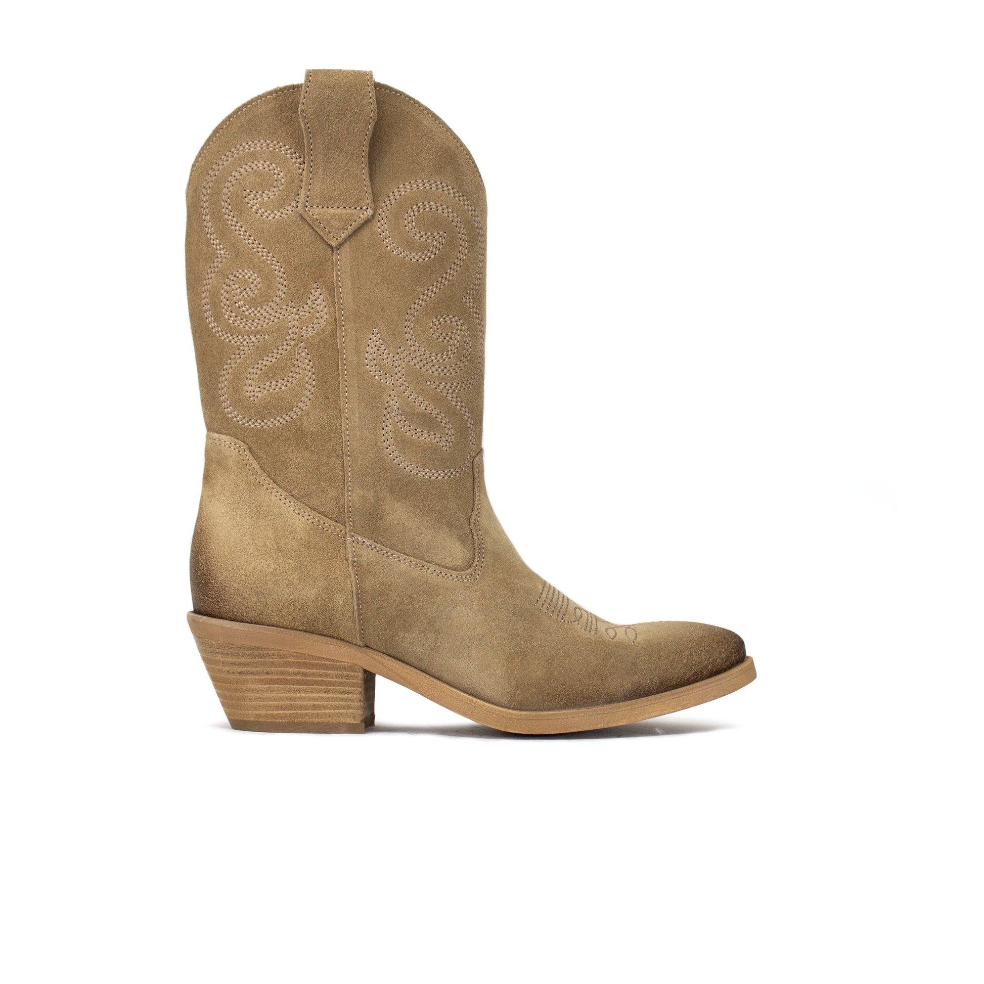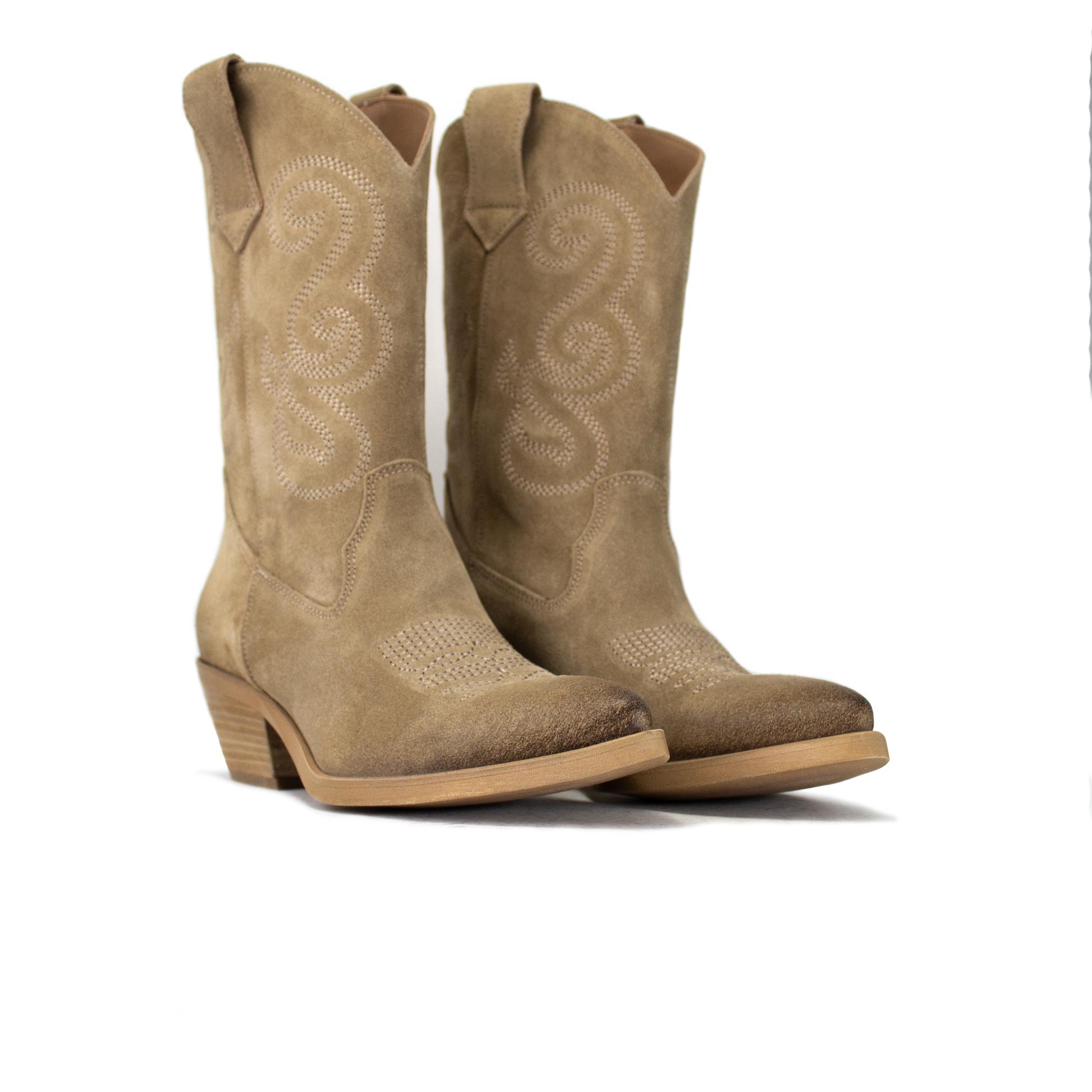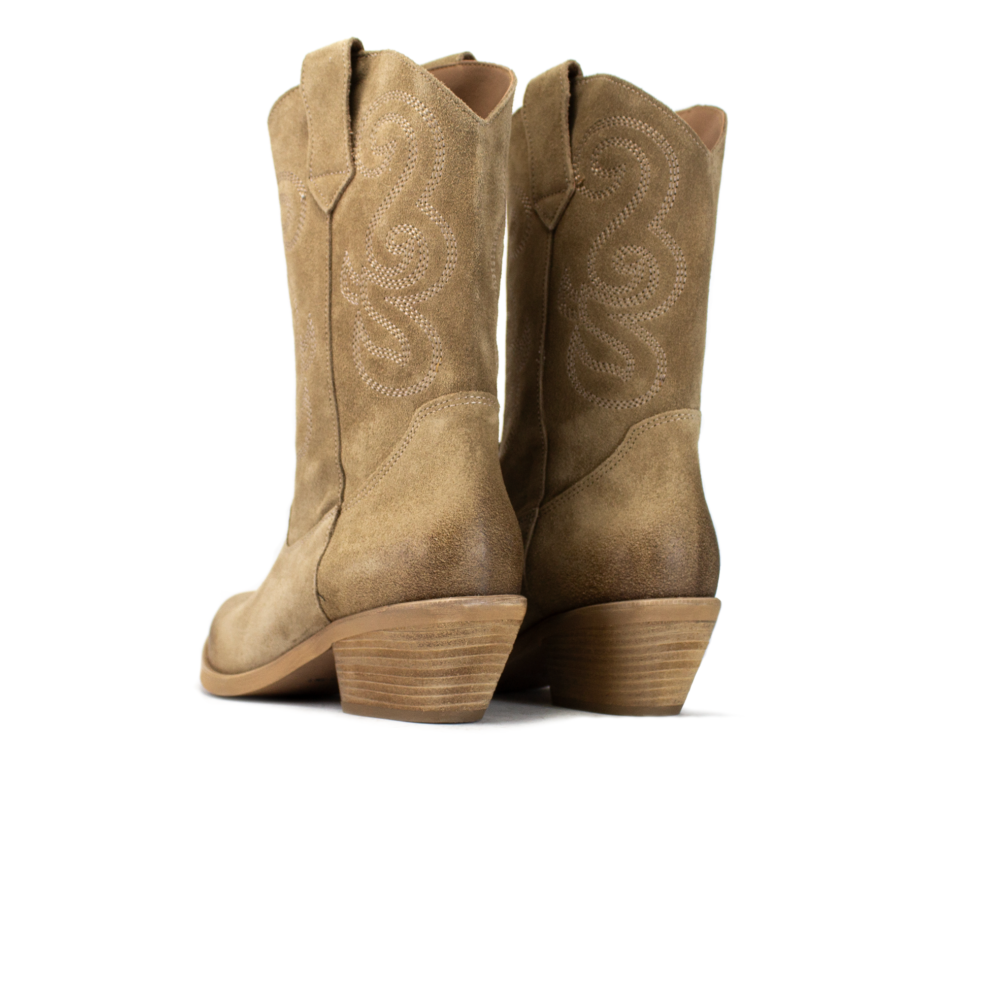 A differenza dei classici stivali texani rigidi, la nostra pelle scamosciata è selezionata per la sua flessibilità. Il gambale scivola dolcemente sulla gamba, garantendo un comfort assoluto e un look naturale. I decori sinuosi sulla gamba e sulla punta aggiungono una texture preziosa senza appesantire il design, esaltando l'artigianalità del prodotto.