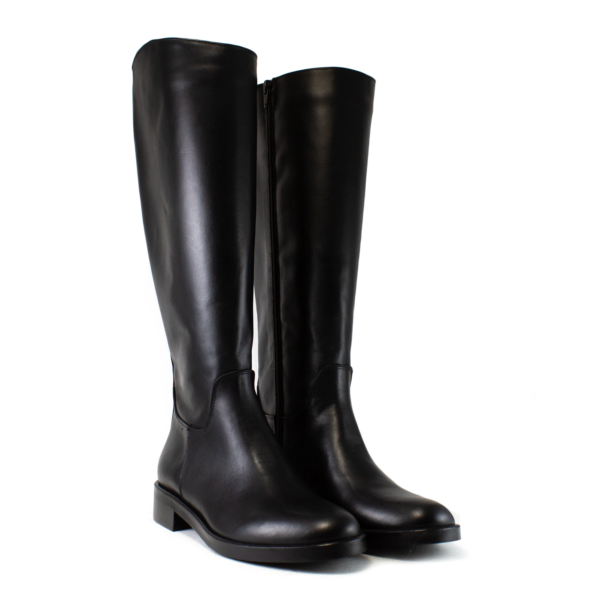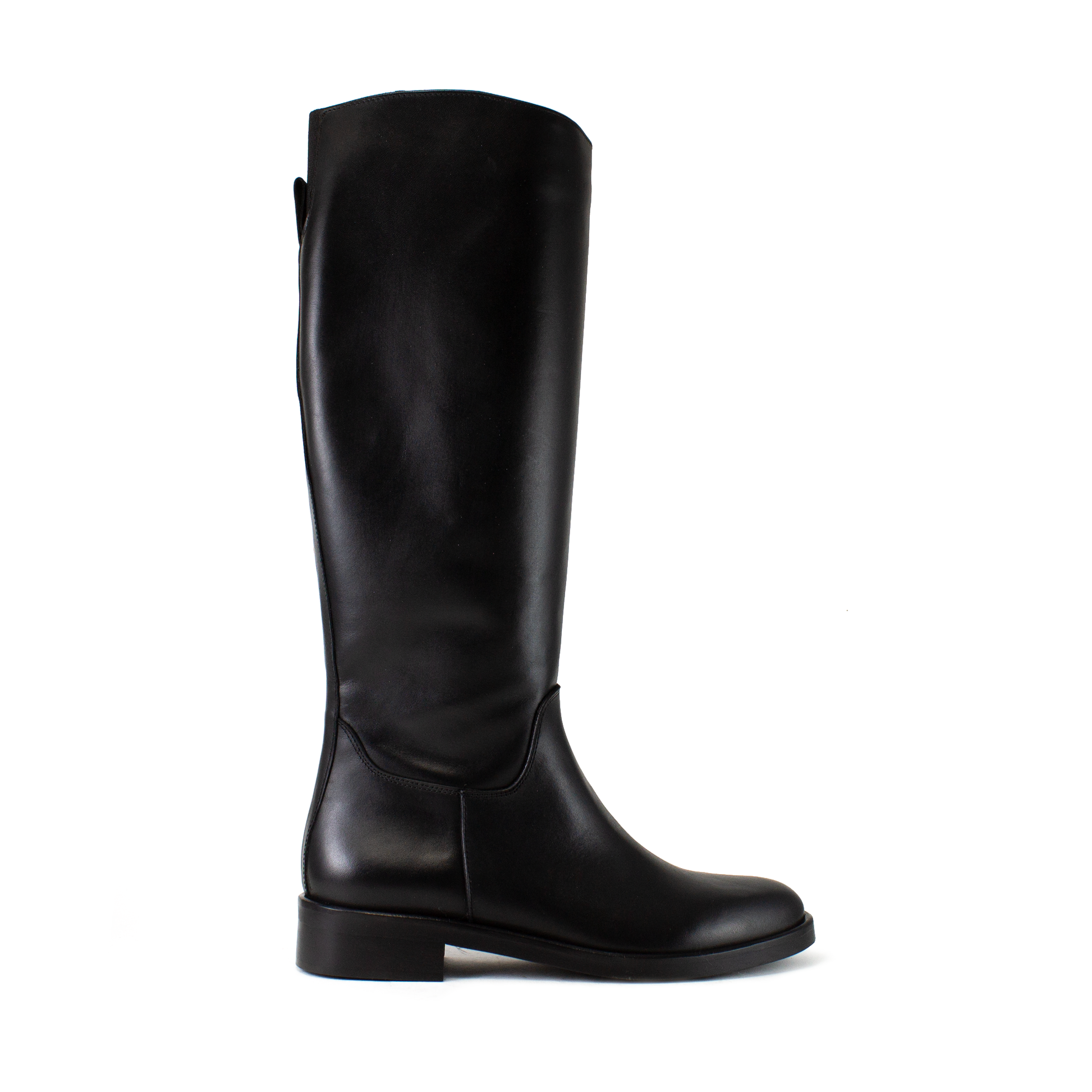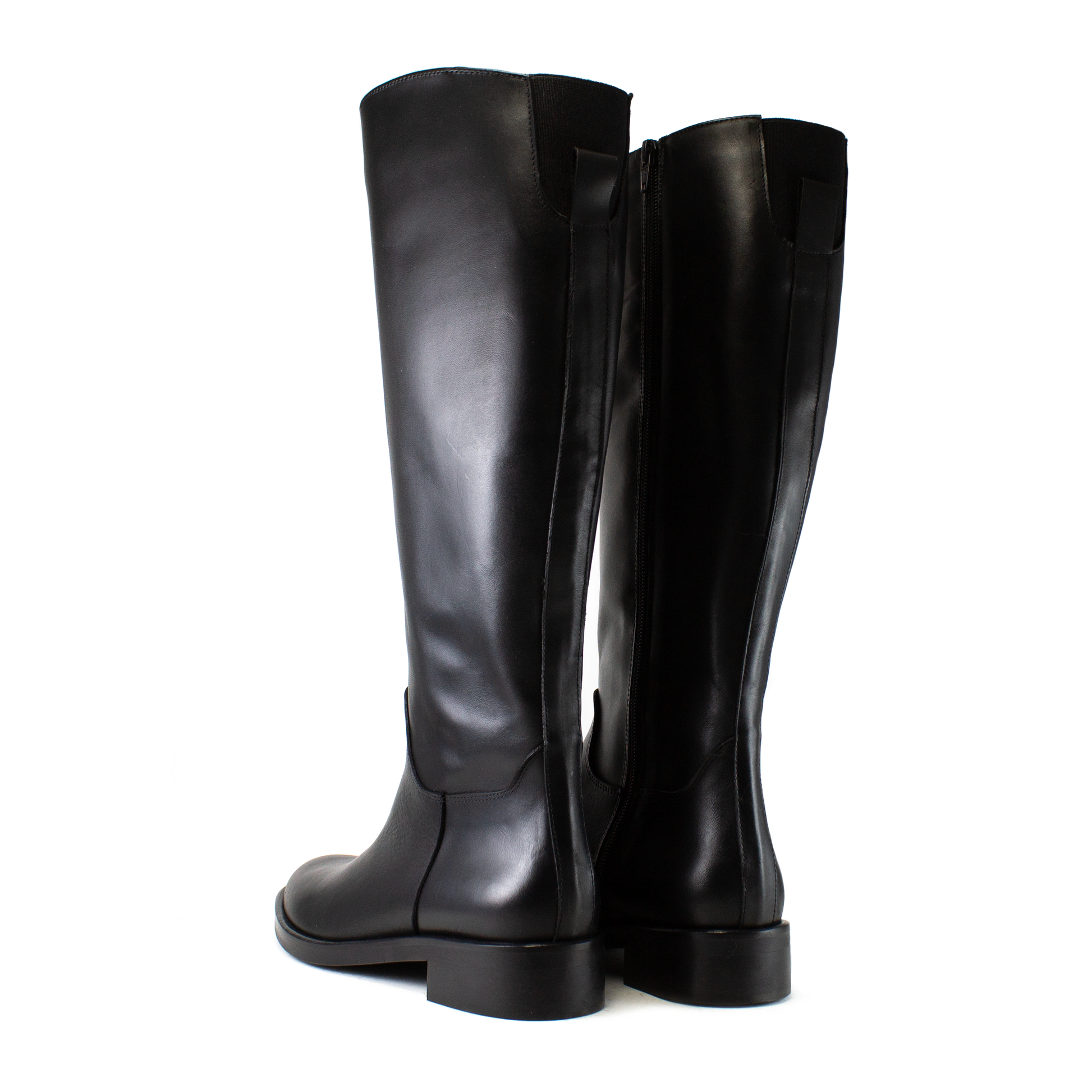 Rinnova il tuo guardaroba invernale con questi splendidi stivali cavallerizzo sotto il ginocchio, l'emblema dell'eleganza classica rivisitata in chiave moderna. Interamente realizzati in vera pelle nera di altissima qualità, questi stivali uniscono l'estetica sofisticata all'artigianato Made in Italy.