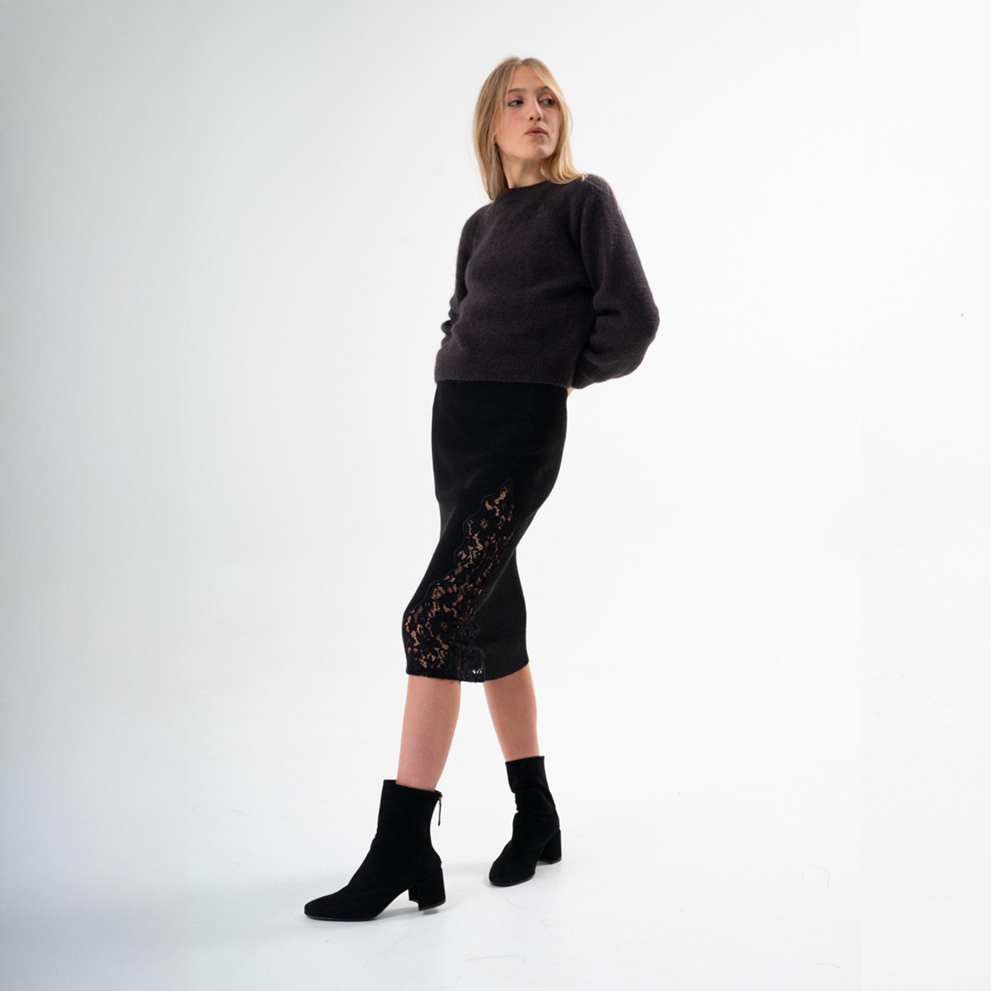 Stivaletto con tacco largo sopra e punta arrotondata alla caviglia, morbido dall'effetto vintage. La pcrosta super morbida dona un effetto calza senza cuciture, la cerniera si trova sulla parte posteriore.
