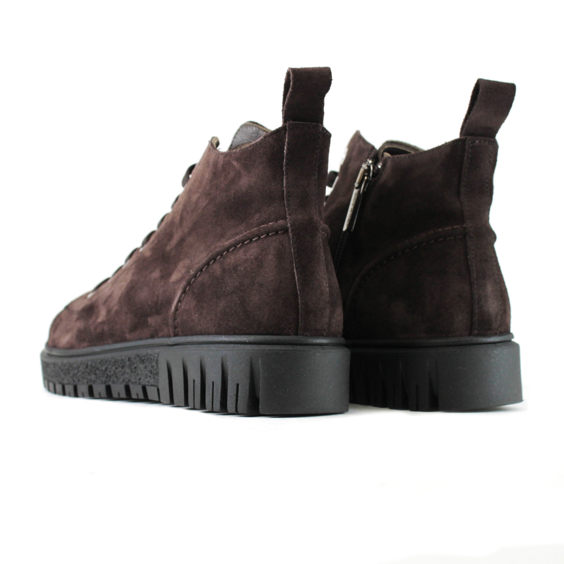 La cerniera sulla parte interna è l'elemento chiave per la comodità: una volta regolati i lacci, puoi calzare e sfilare il polacchino in un attimo, senza dover allacciare ogni volta. La tomaia in suede Marrone offre una finitura ricca e morbida, emblema dell'eccellenza Made in Italy. La suola robusta carrarmato è studiata per garantire ammortizzazione, isolamento e stabilità, rendendolo perfetto per l'uso prolungato.