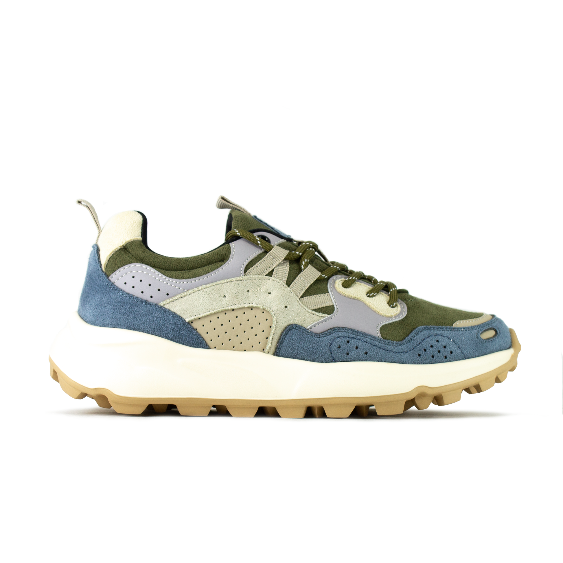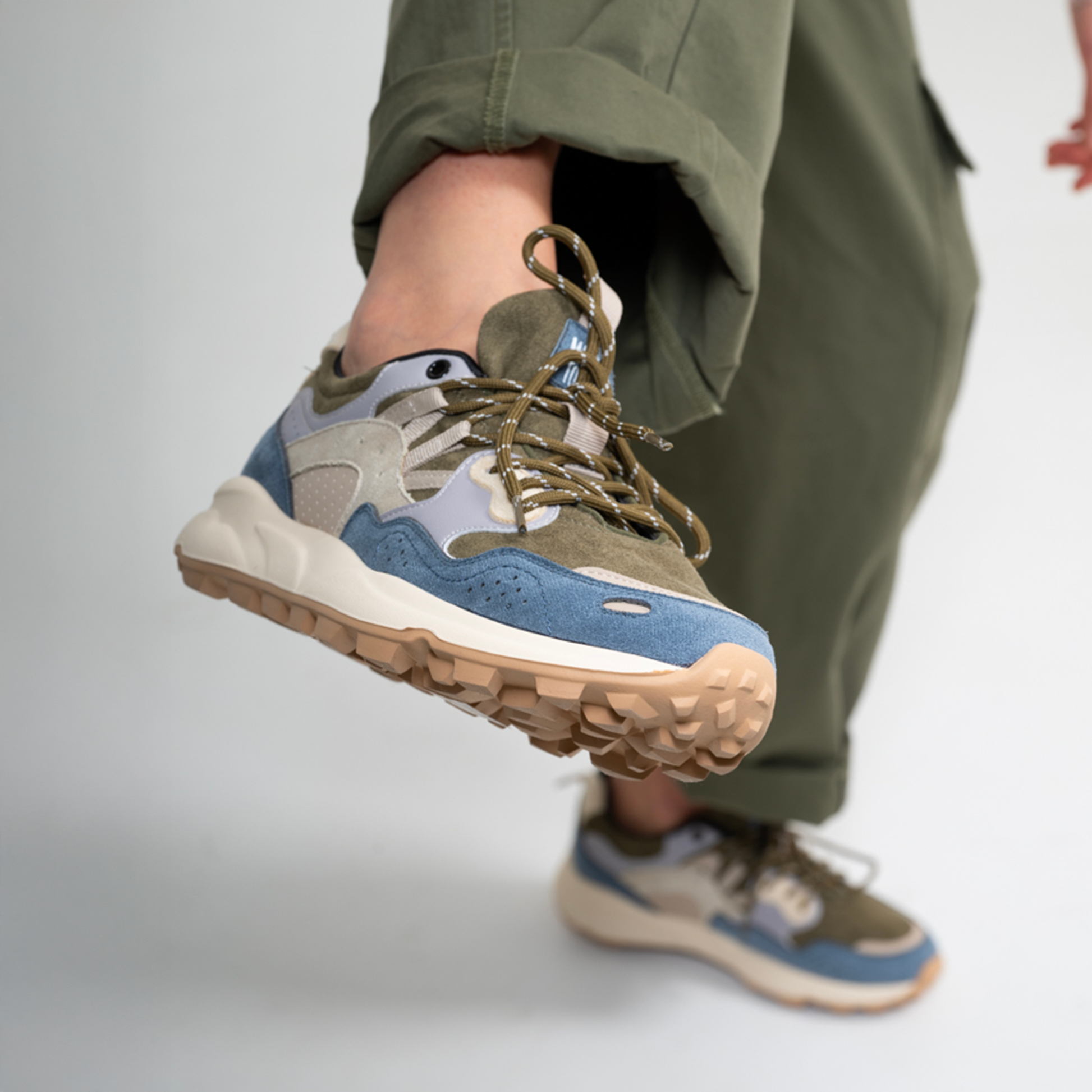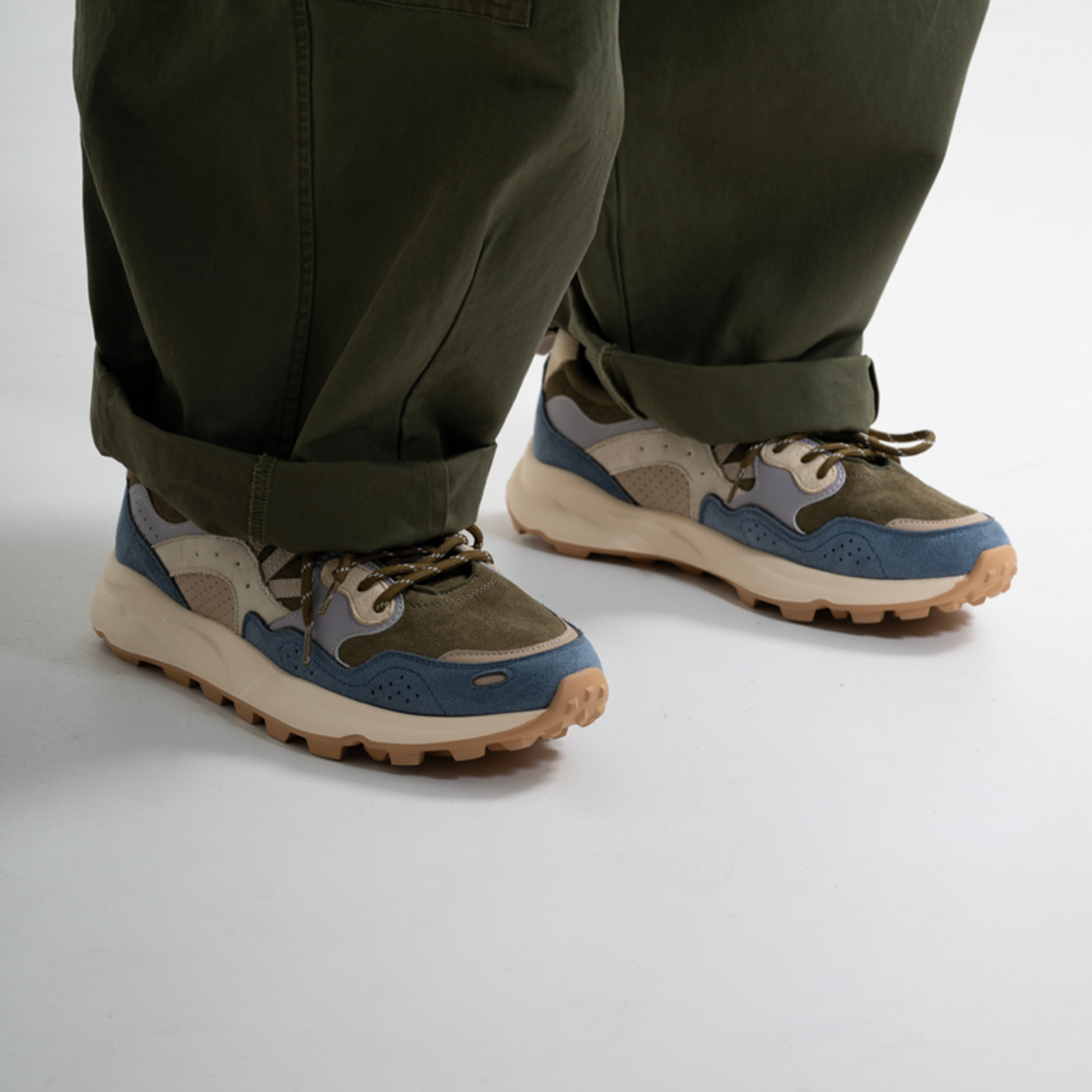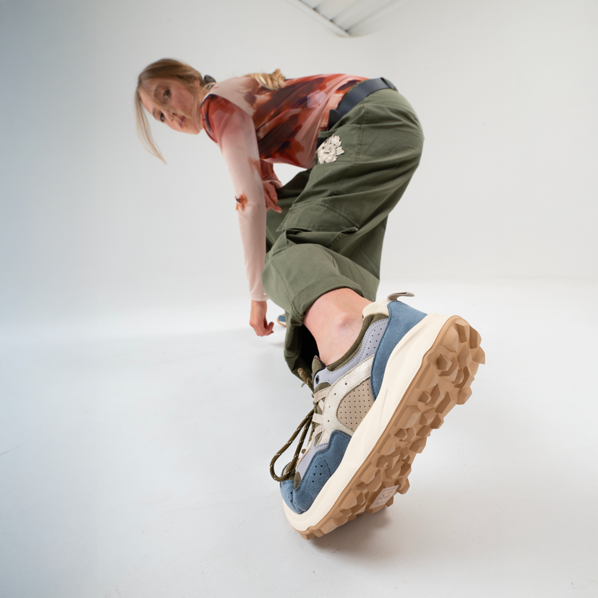 Ispirate al mondo sportivo e outdoor, le sneaker Flower mixano dettagli active con un'estetica cool, perfetta anche in città. La tomaia in tessuto tecnico presenta dettagli in suede con la caratteristica costruzione overlapping, string trekking. La suola è in gomma ultra leggera, con spoiler colorato sotto il tallone e battistrada dentellato.