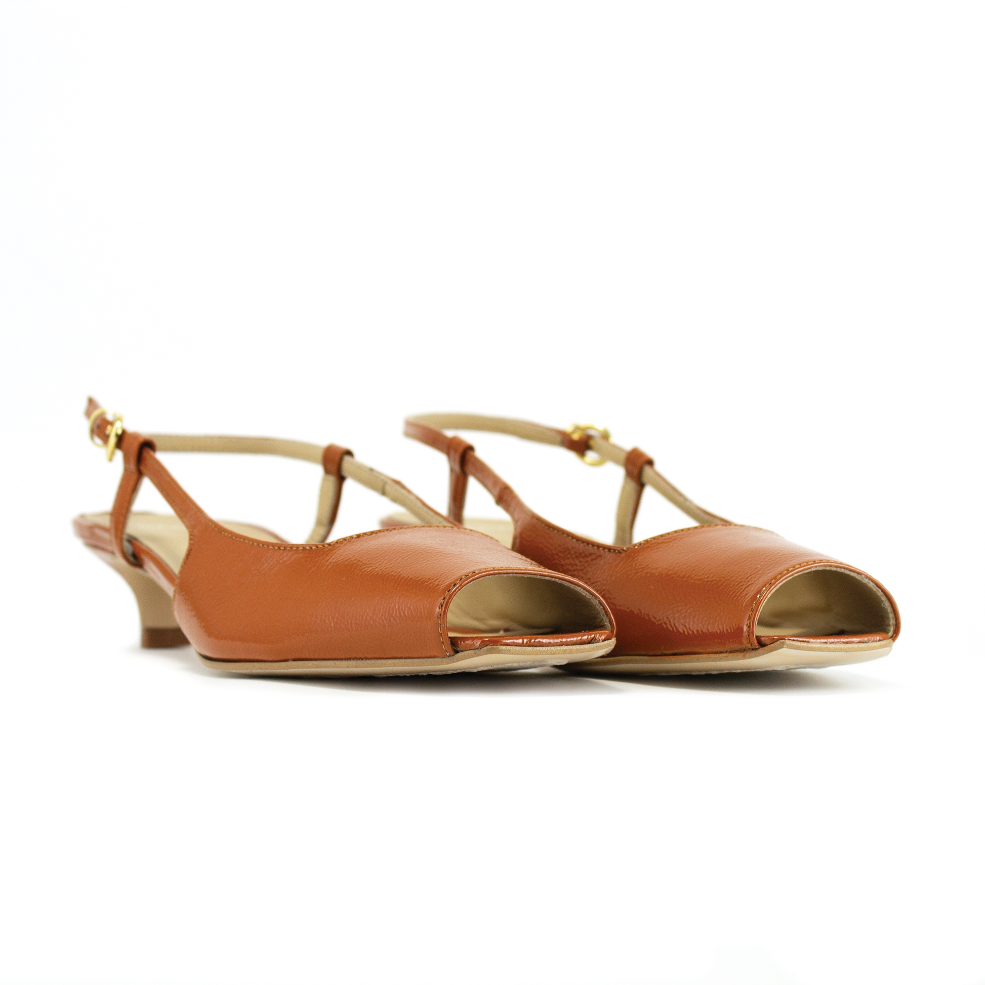 Questa slingback è pensata per chi cerca comfort e stile: il design spuntato permette al piede di respirare, ma coprendo le dita; mentre il cinturino regolabile assicura una calzata perfetta. Il tacco kitten heel aggiunge un tocco di femminilità senza sacrificare la comodità, i laccini laterali permettono una camminata stabile.