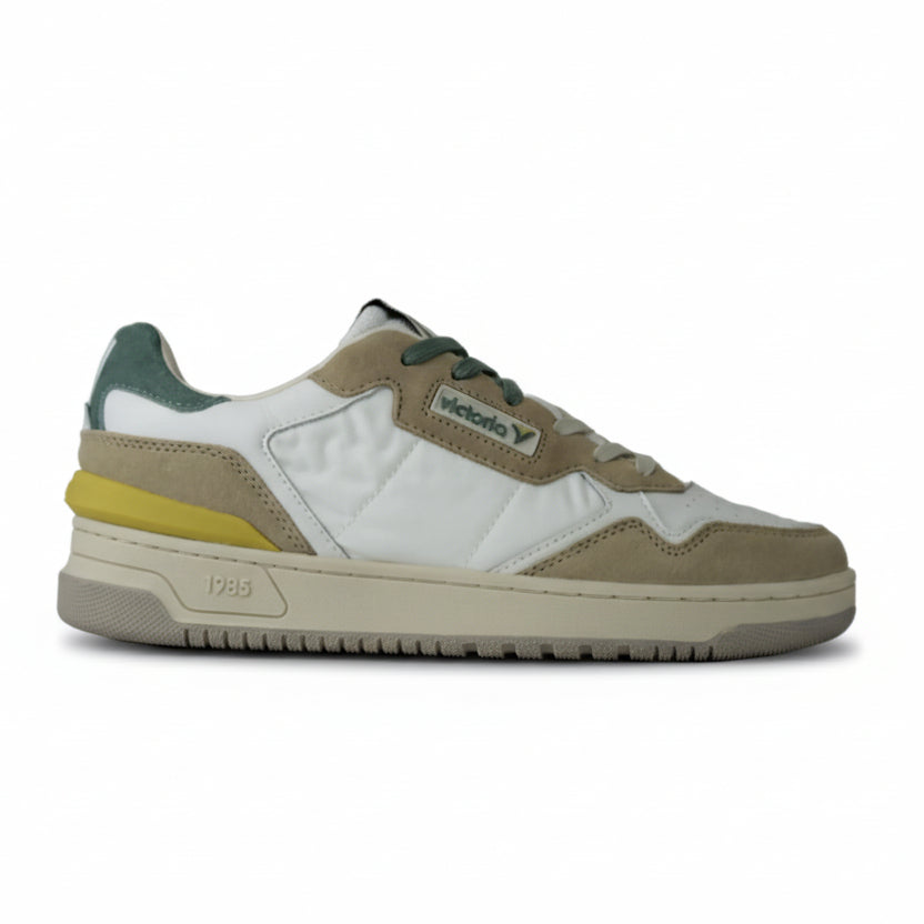 Queste sneakers unisex C80-URBAN della collezione 1985 combinano stile e comfort. Realizzate in pelle bovina di alta qualità con inserti in crosta di pelle. Logo anni '80 di victoria incorniciato sul lato. Dettagli colorati, stabilizzatore sul tallone e suola leggermente ambrata. Includono una soletta ergonomica che si adatta alla forma del piede regalando una sensazione di comfort. La sneakers tennis con fori sul davanti.