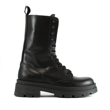 Stivaletto allacciato alto 10 fori con cerniera sulla parte interna per facilitare la calzata. Tomaia...