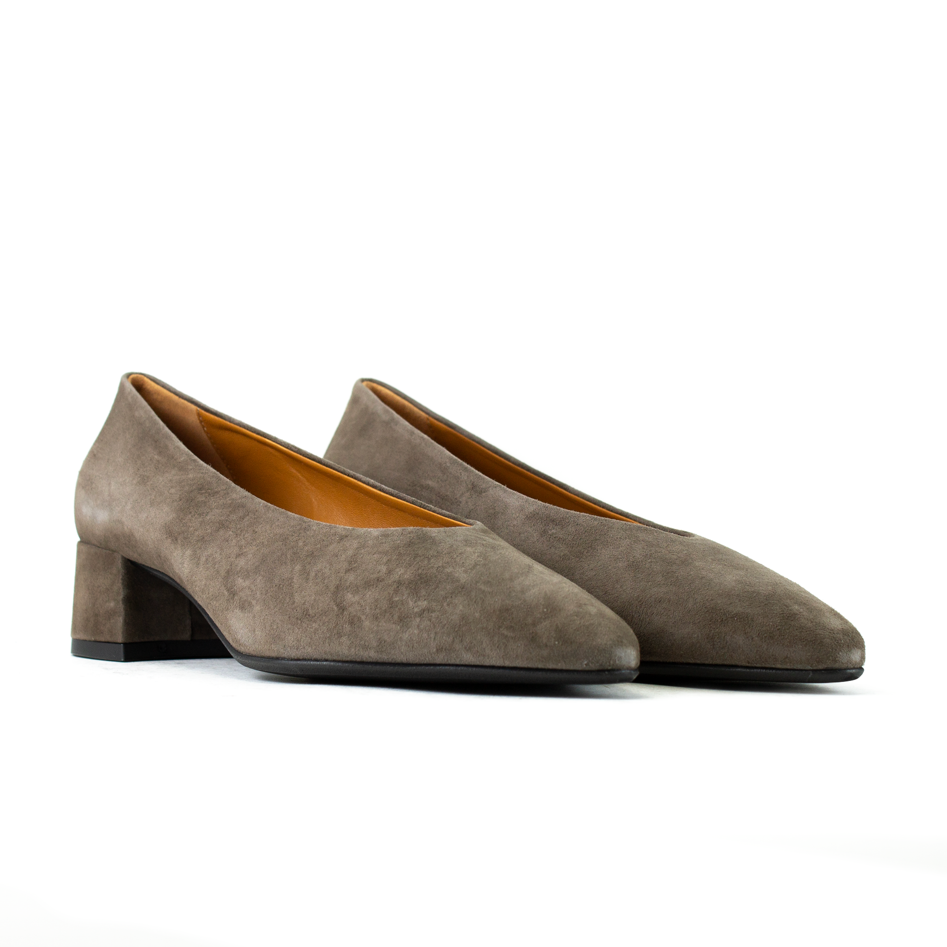 Il décolleté a punta accollato in camoscio scuro è la quintessenza dello stile italiano, unendo l'eleganza senza tempo a un comfort ineguagliabile. Queste scarpe sono realizzate in vera pelle scamosciata di altissima qualità, con una finitura vellutata che dona profondità e raffinatezza al classico grigio.