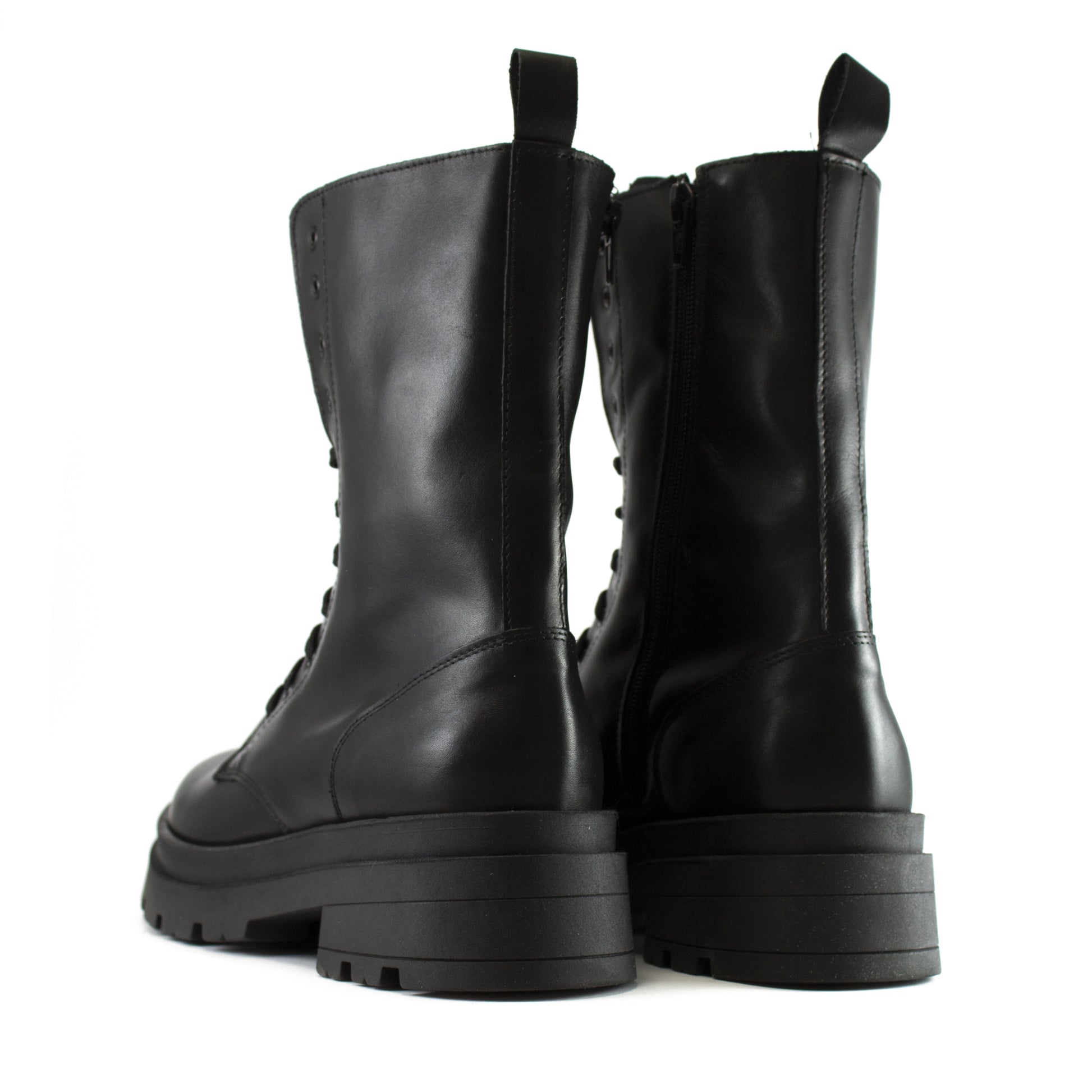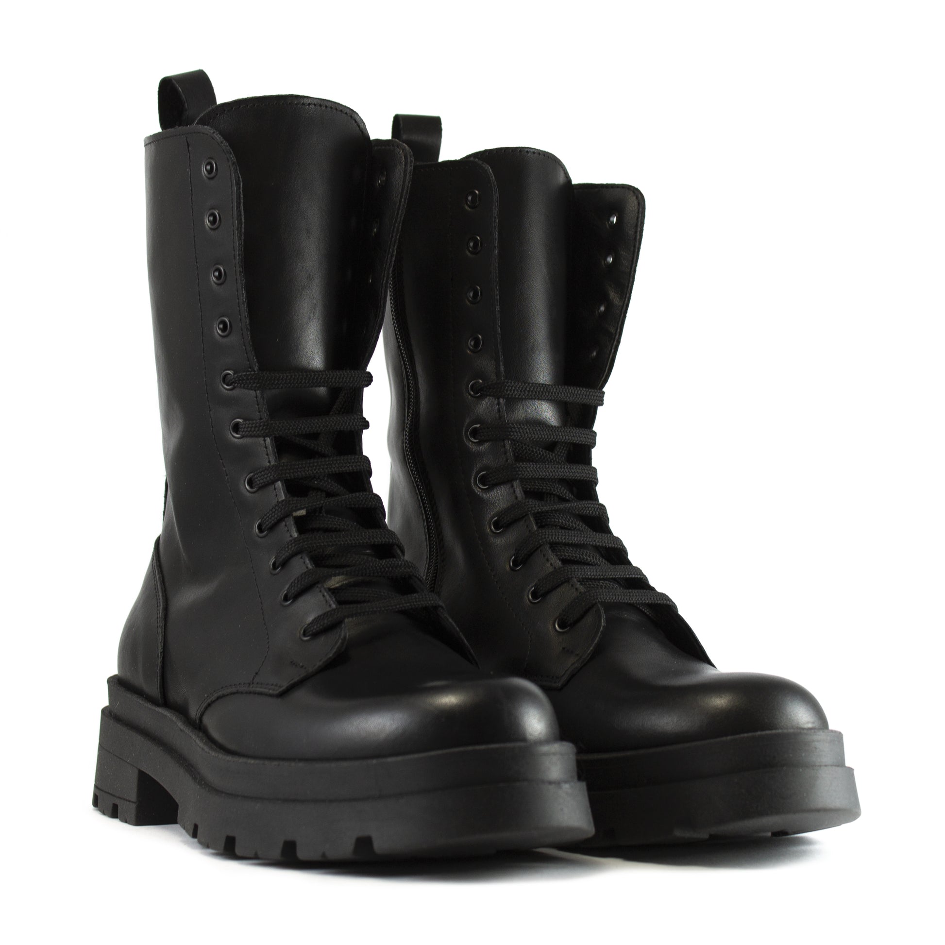 Sfoggia un look urban e deciso con i nostri anfibi donna alti a 11 fori, un'icona di stile rinnovata dall'artigianato Made in Italy. Questi stivali sono realizzati in vera pelle nera lucida e resistente, garantendo non solo un appeal aggressivo ma anche una durabilità eccezionale.