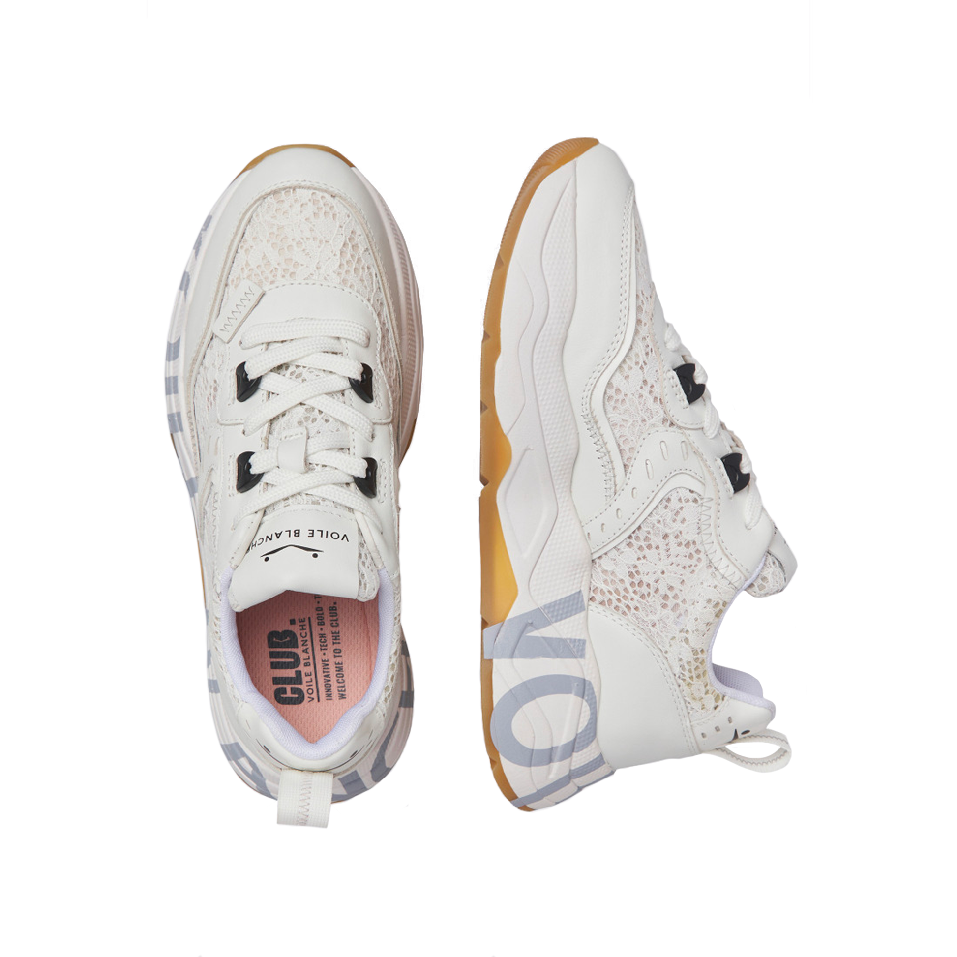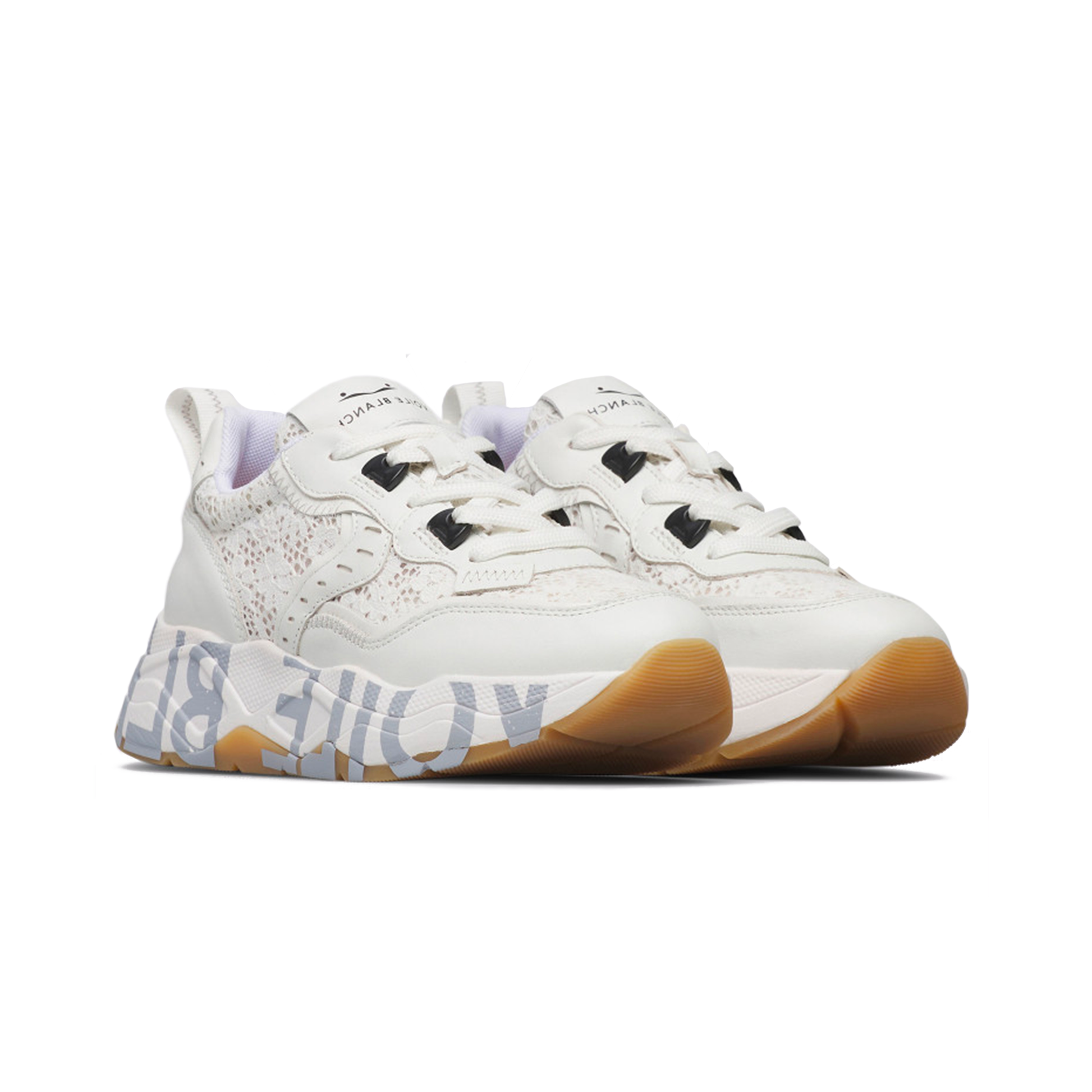 - Tomaia in pizzo bianco e pelle