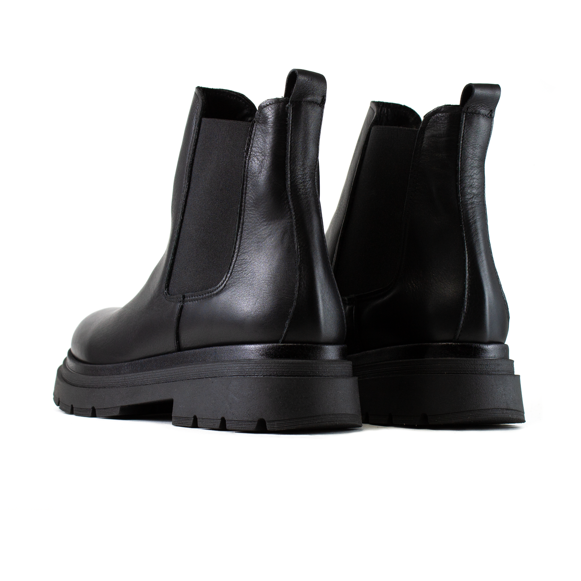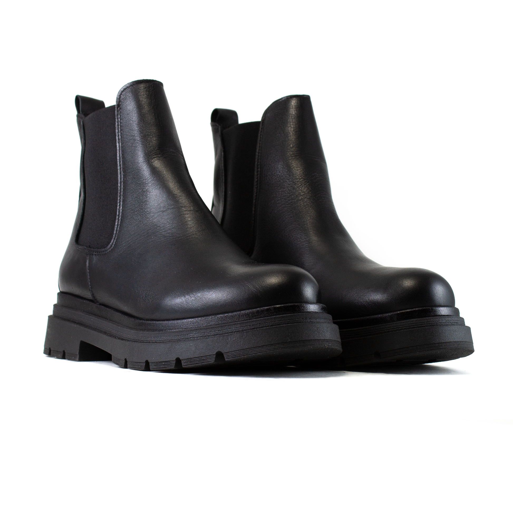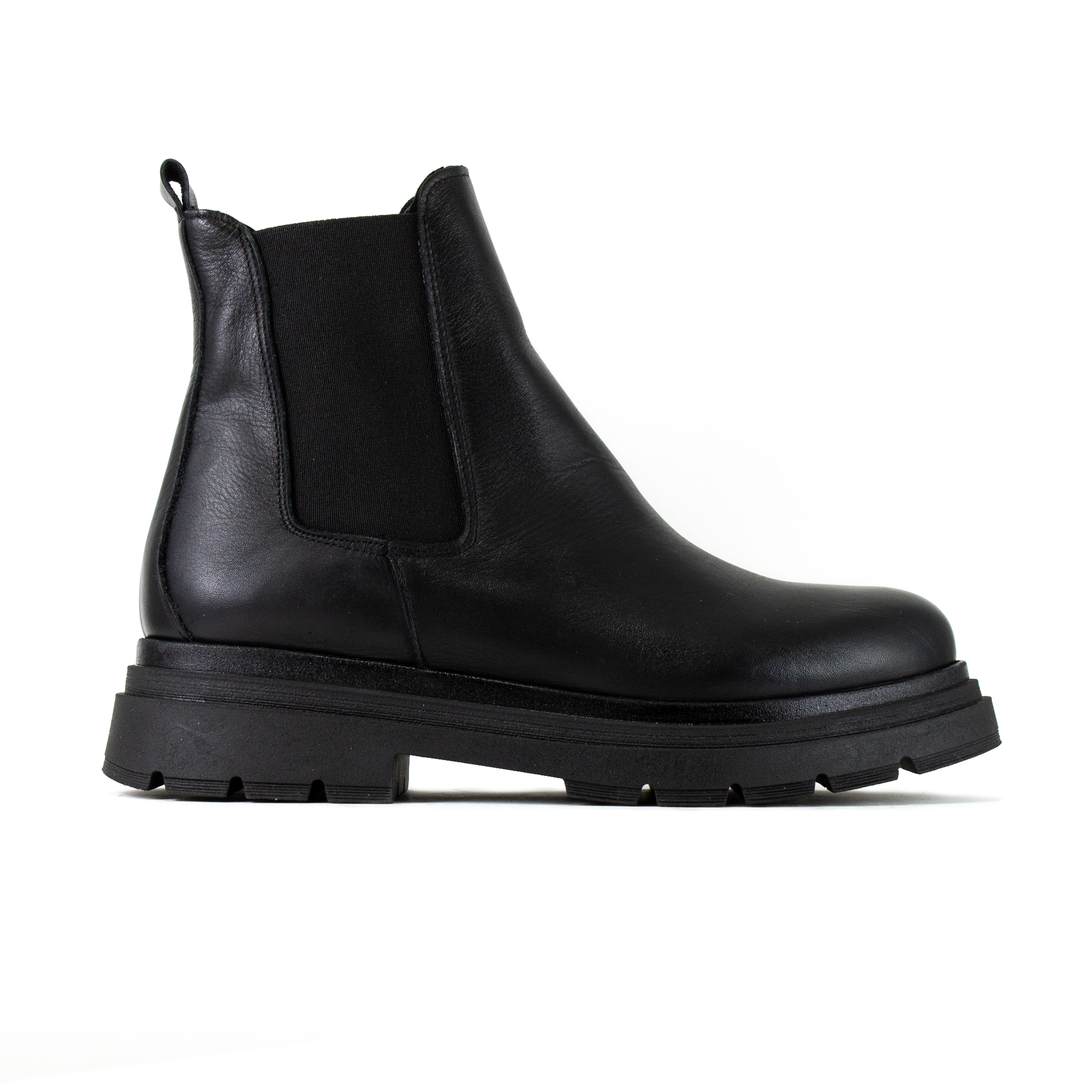 Stivaletto chelsea boot con suola chunky carrarmato leggerissima, appena sopra la caviglia. La pianta è affusolata e la suola con un leggero dislivello che slancia la gamba e rende la scarpa femminile.