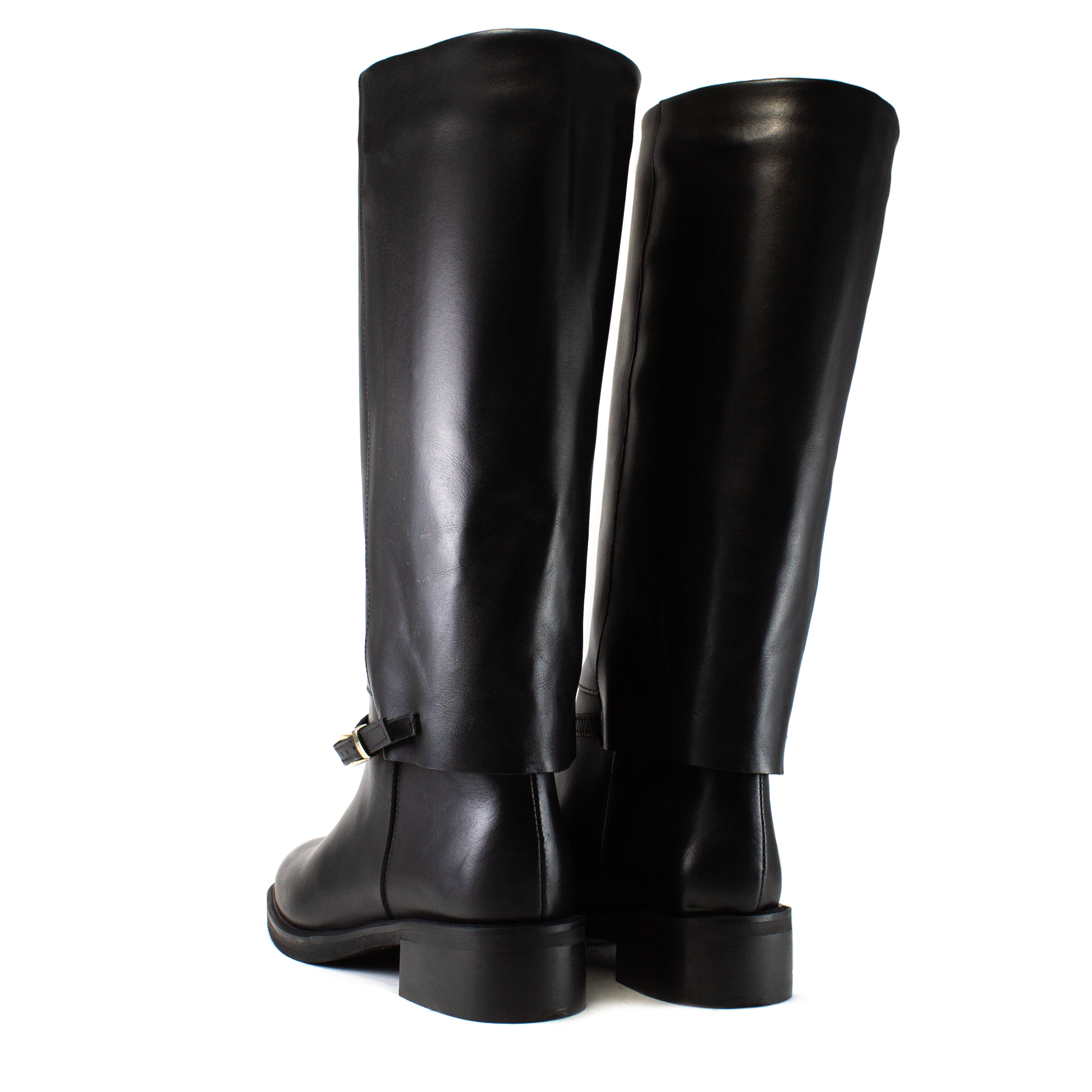 Stivali cavallerizzo a tubo pull-on con rovescia e accessorio laterale.