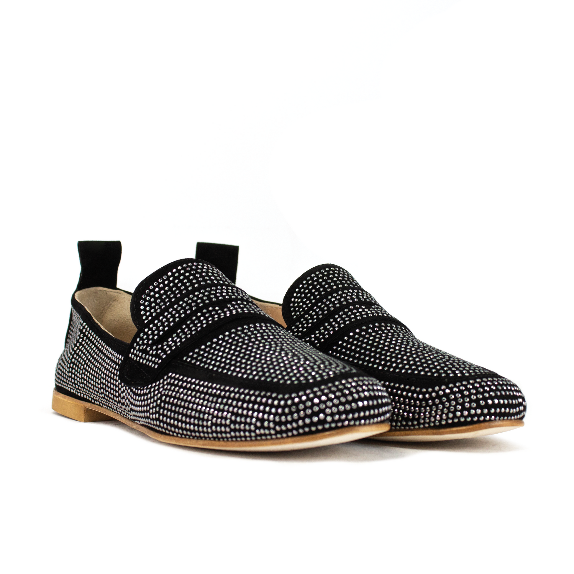 Hai mai sognato di camminare sulle nuvole? Beh, questo è il più vicino che puoi arrivarci! Il nostro mocassino artigianale con bendina bocca di leone, reso unico e raffinato con l'applicazione di micro strass sulla tomaia. Realizzato in pelle scamosciata morbidissima e con la lavorazione a sacchetto che lo rende leggero, flessibile e incredibilmente comodo.