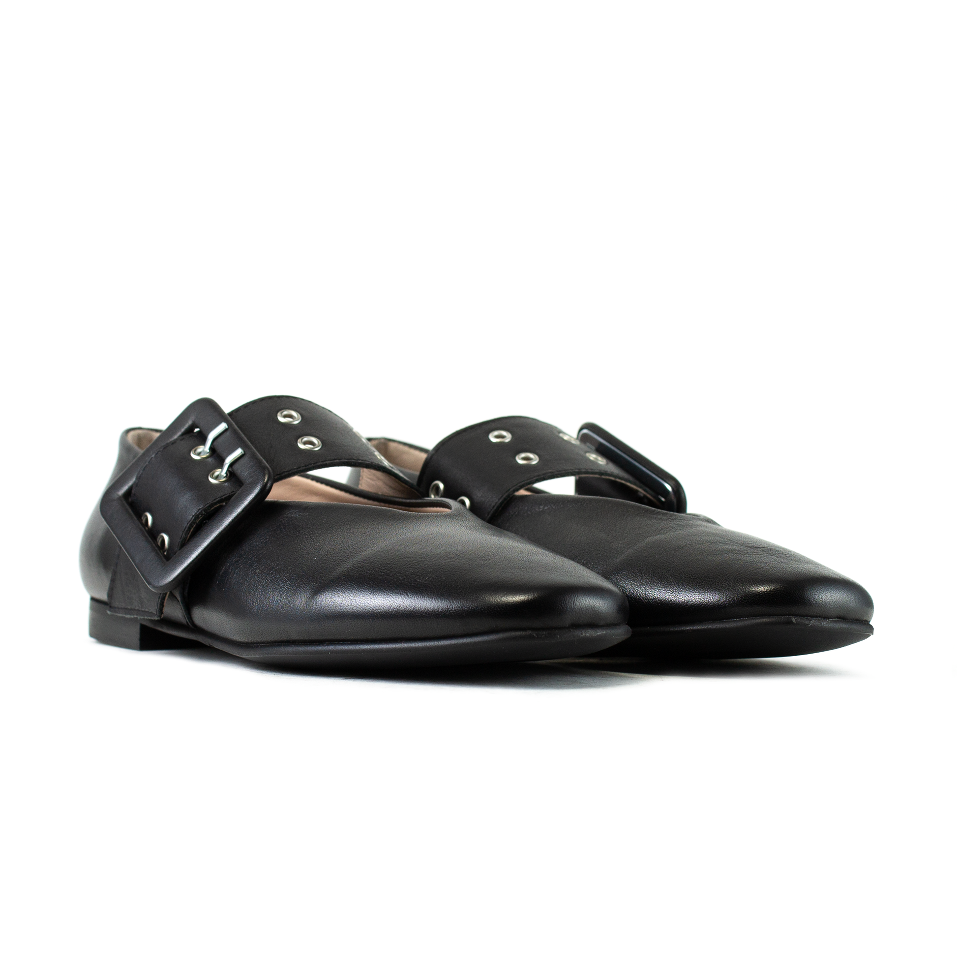 La punta sfilata leggermente squadrata allunga la silhouette del piede e della gamba, mantenendo al contempo il comfort di una calzatura rasoterra. La pelle morbida garantisce una calzata avvolgente, rendendole perfette per l'ufficio, il tempo libero o un evento serale.