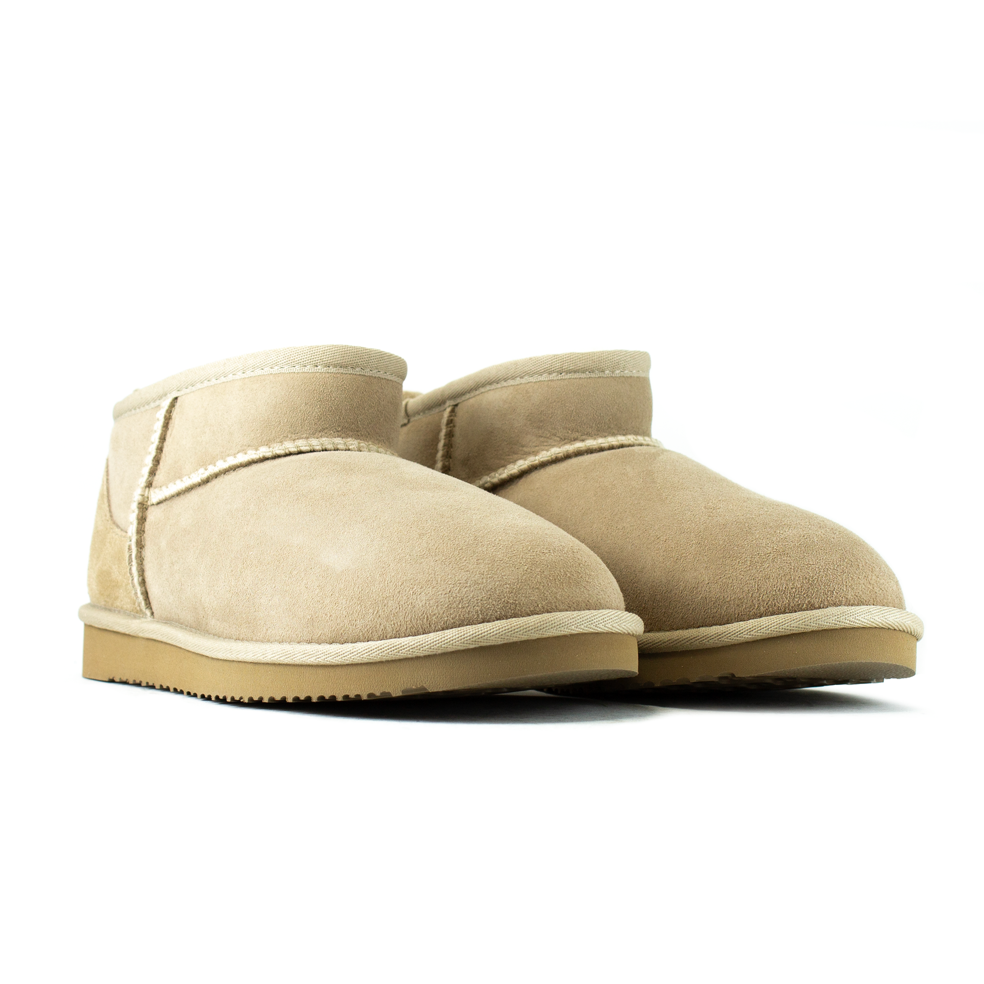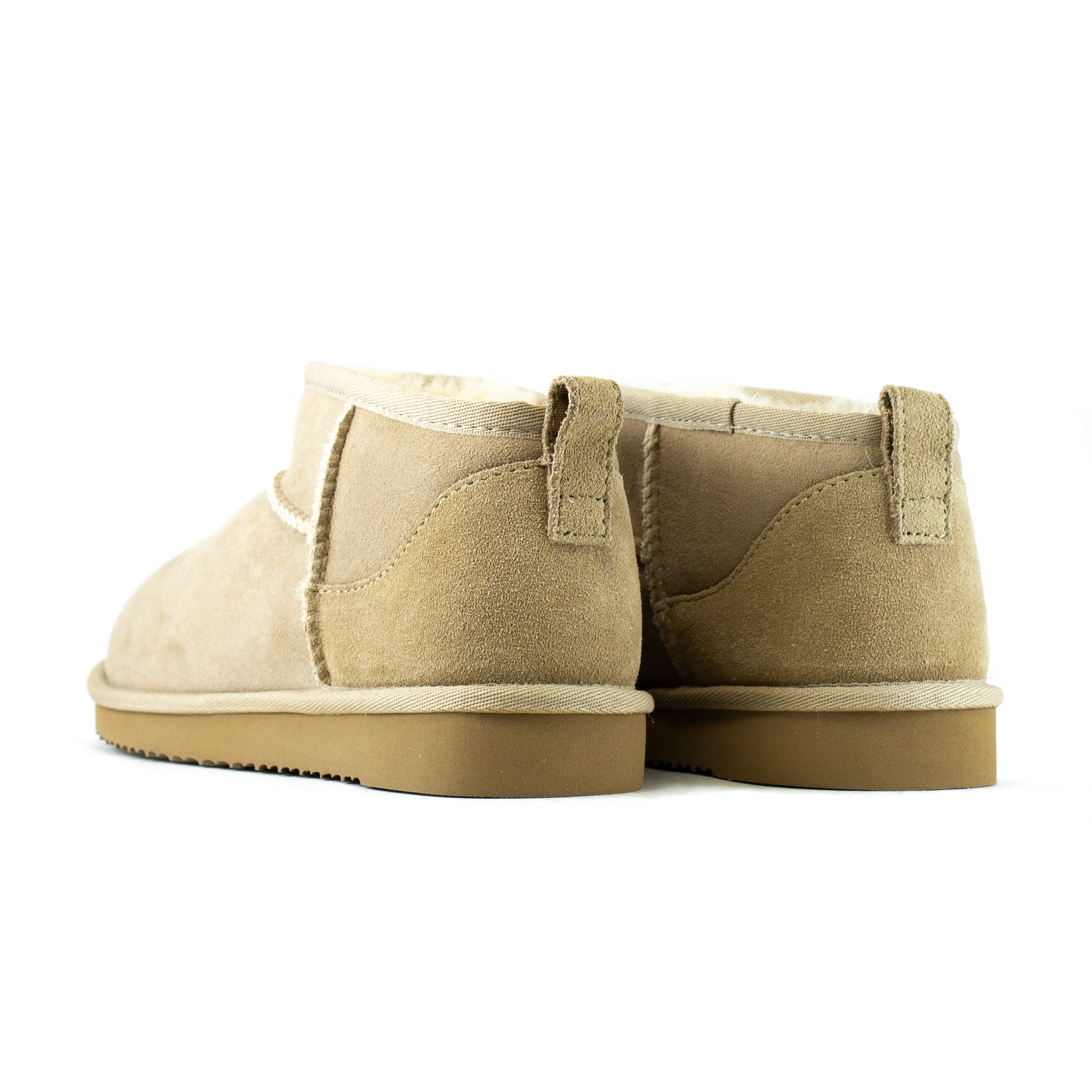 L'interno è interamente foderato in montone (o shearling) naturale super morbido, noto per le sue proprietà termoregolatrici. Questo significa piedi sempre caldi, asciutti e coccolati, eliminando l'umidità e mantenendo la temperatura ottimale, anche nelle giornate più rigide.