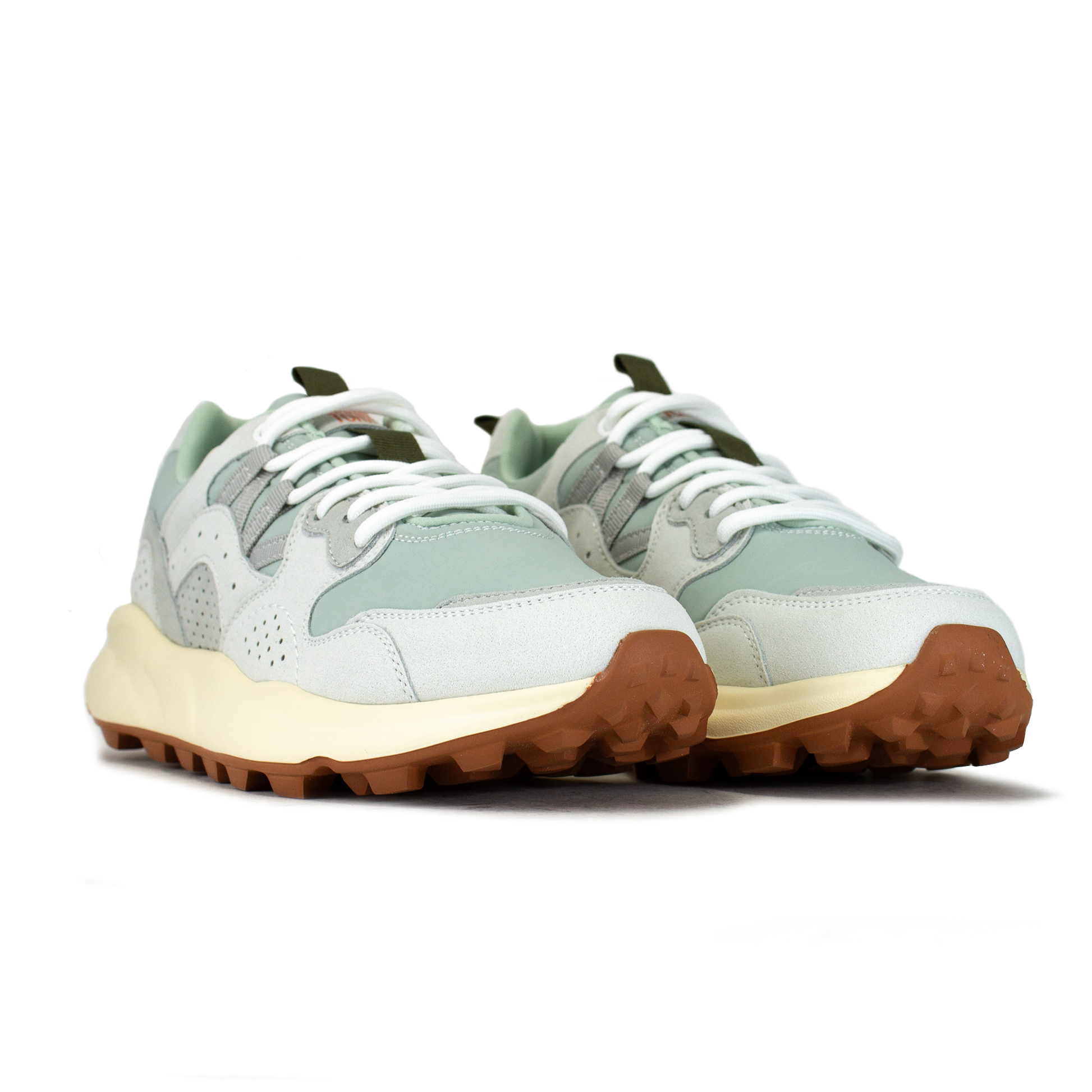 Ispirate al mondo sportivo e outdoor, le sneaker Flower mixano dettagli active con un'estetica cool, perfetta anche in città. La tomaia in tessuto tecnico presenta dettagli in suede con la caratteristica costruzione overlapping, string trekking. La suola è in gomma ultra leggera, con spoiler colorato sotto il tallone e battistrada dentellato.