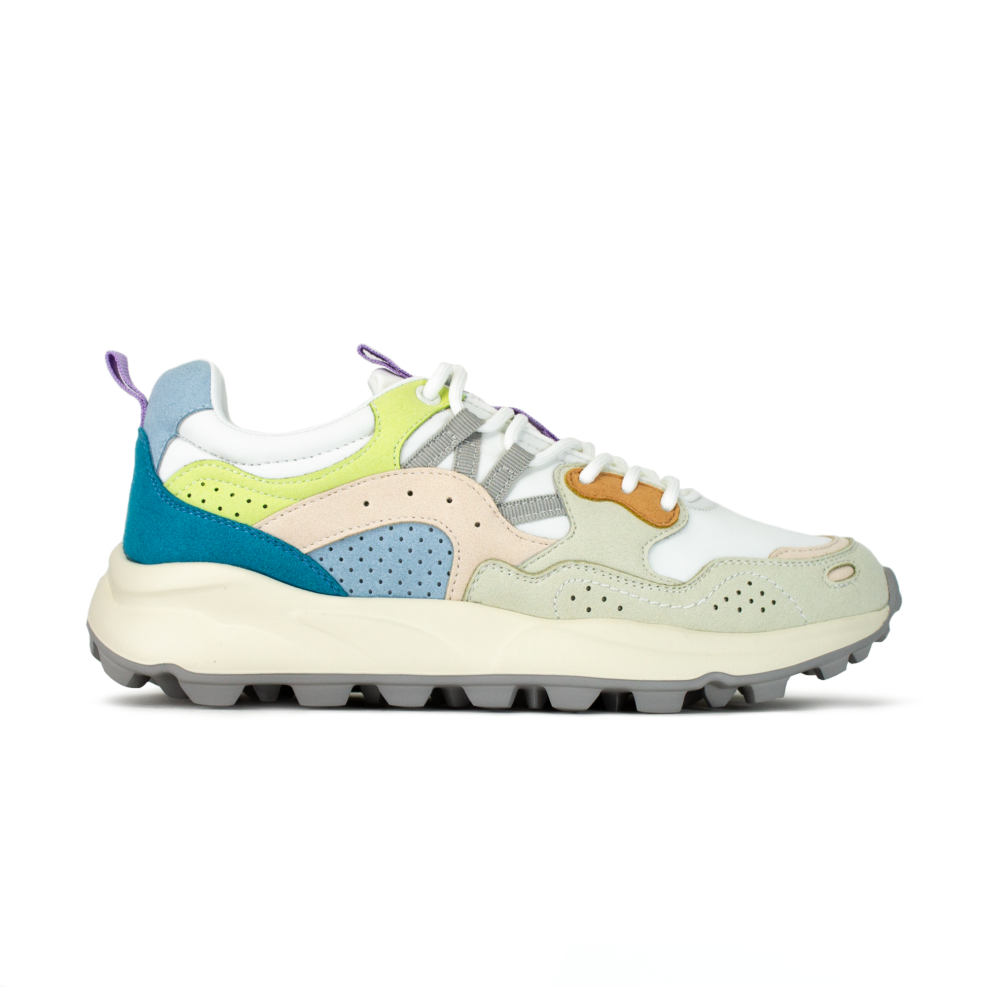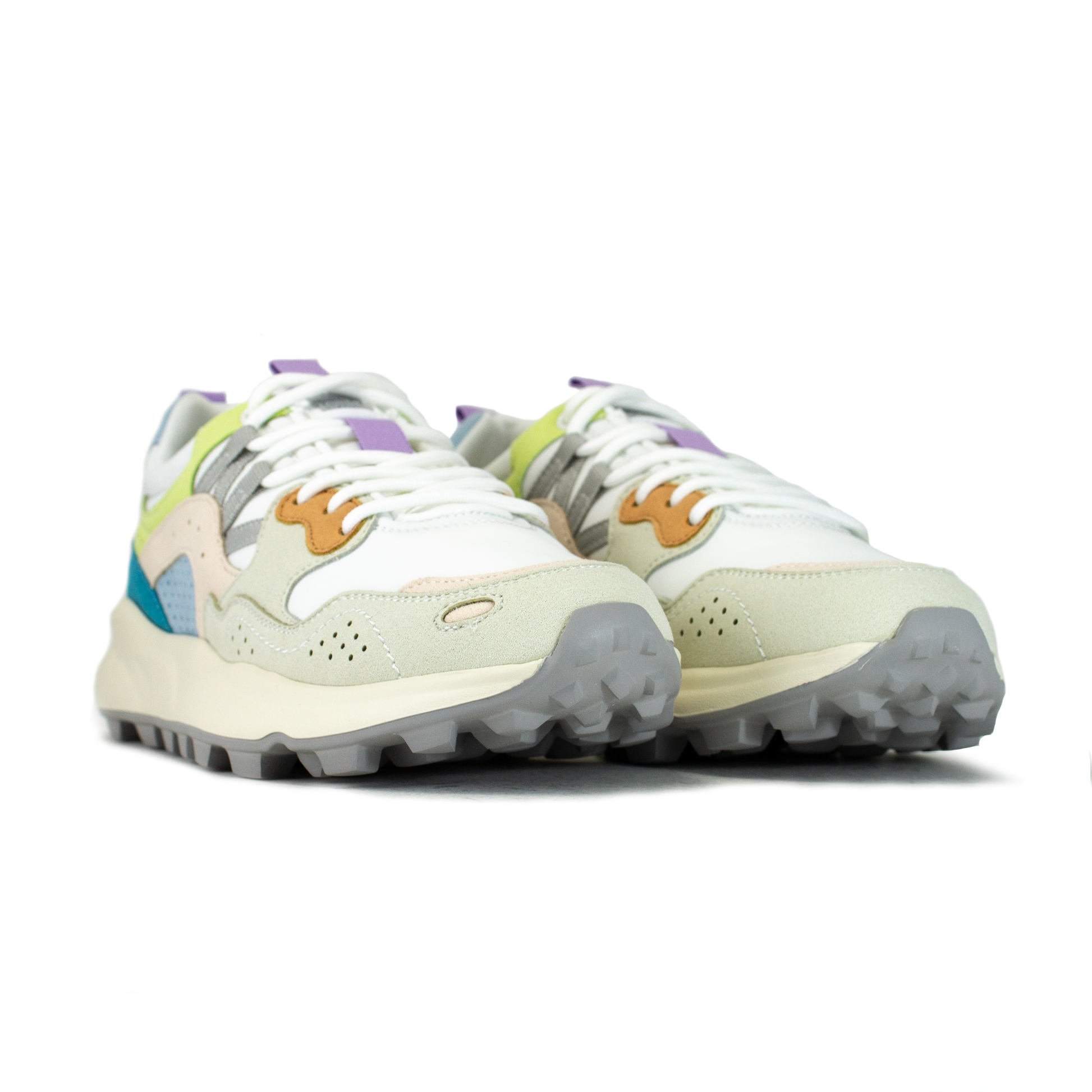 Ispirate al mondo sportivo e outdoor, le sneaker Flower mixano dettagli active con un'estetica cool, perfetta anche in città. La tomaia in tessuto tecnico presenta dettagli in suede con la caratteristica costruzione overlapping, string trekking. La suola è in gomma ultra leggera, con spoiler colorato sotto il tallone e battistrada dentellato.