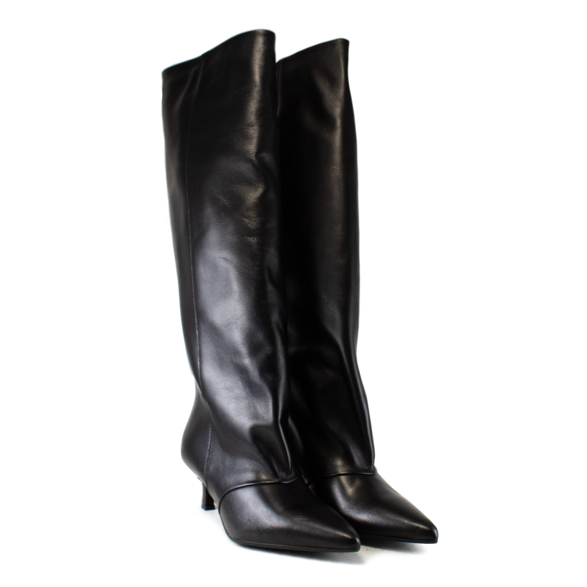 Eleva il tuo look con i nostri stivali alti sotto il ginocchio, il must-have assoluto per la stagione, realizzati con la maestria artigianale Made in Italy. Questi stivali uniscono la sofisticatezza della vera pelle nera alla silhouette di tendenza del momento. Il gambale è volutamente morbido e non strutturato, un dettaglio di design che crea il ricercato effetto slouchy (cadente) quando indossato. Questa caratteristica li rende estremamente comodi e si adatta perfettamente alle tendenze fashion del momento. Il sottile e raffinato kitten heel aggiunge quel lift elegante e di tendenza, garantendo allo stesso tempo un comfort superiore rispetto a un tacco a spillo più alto.