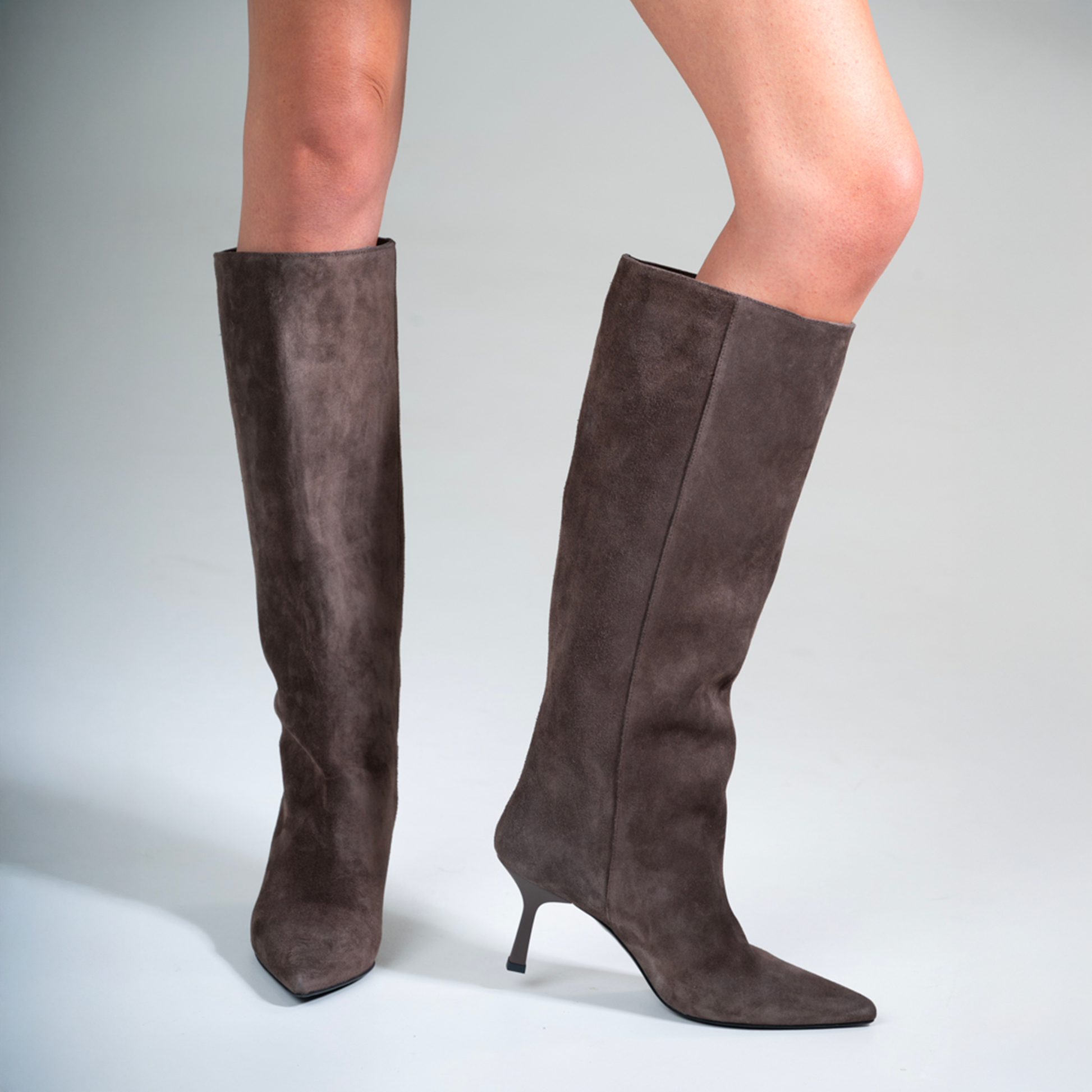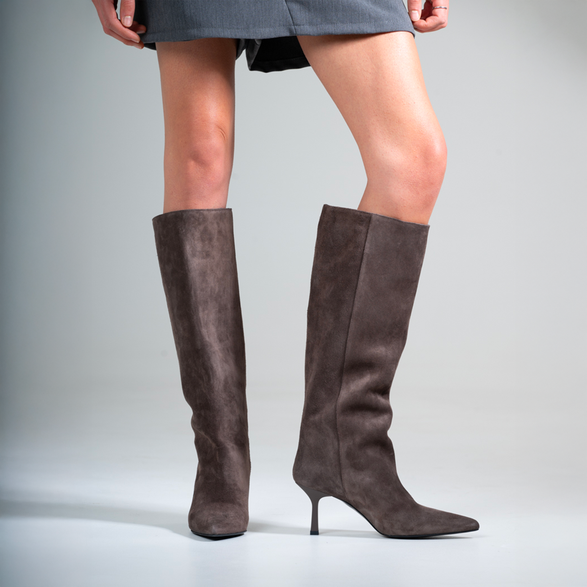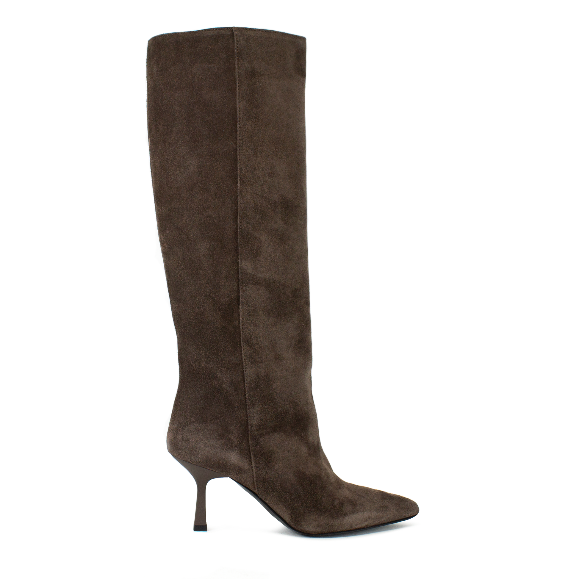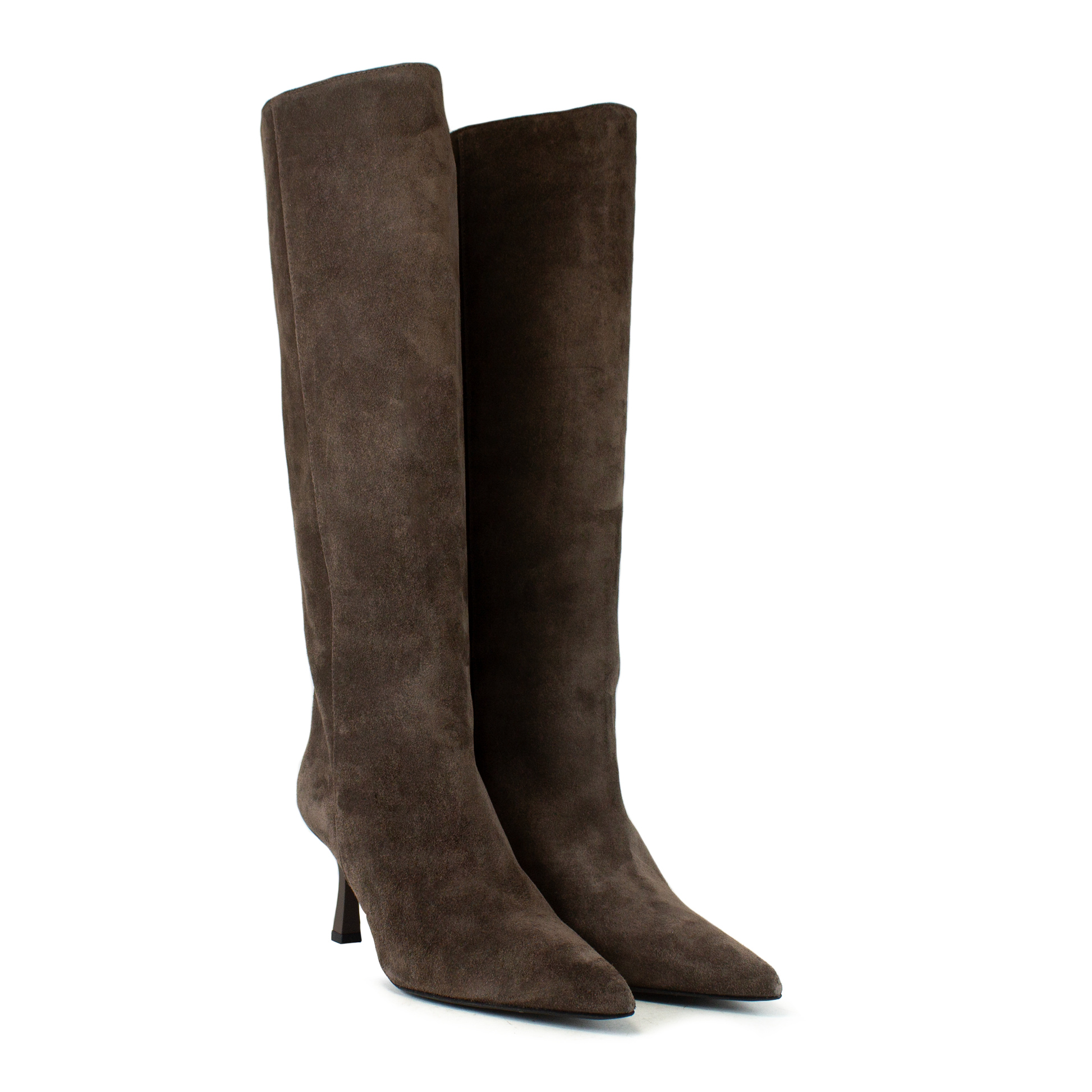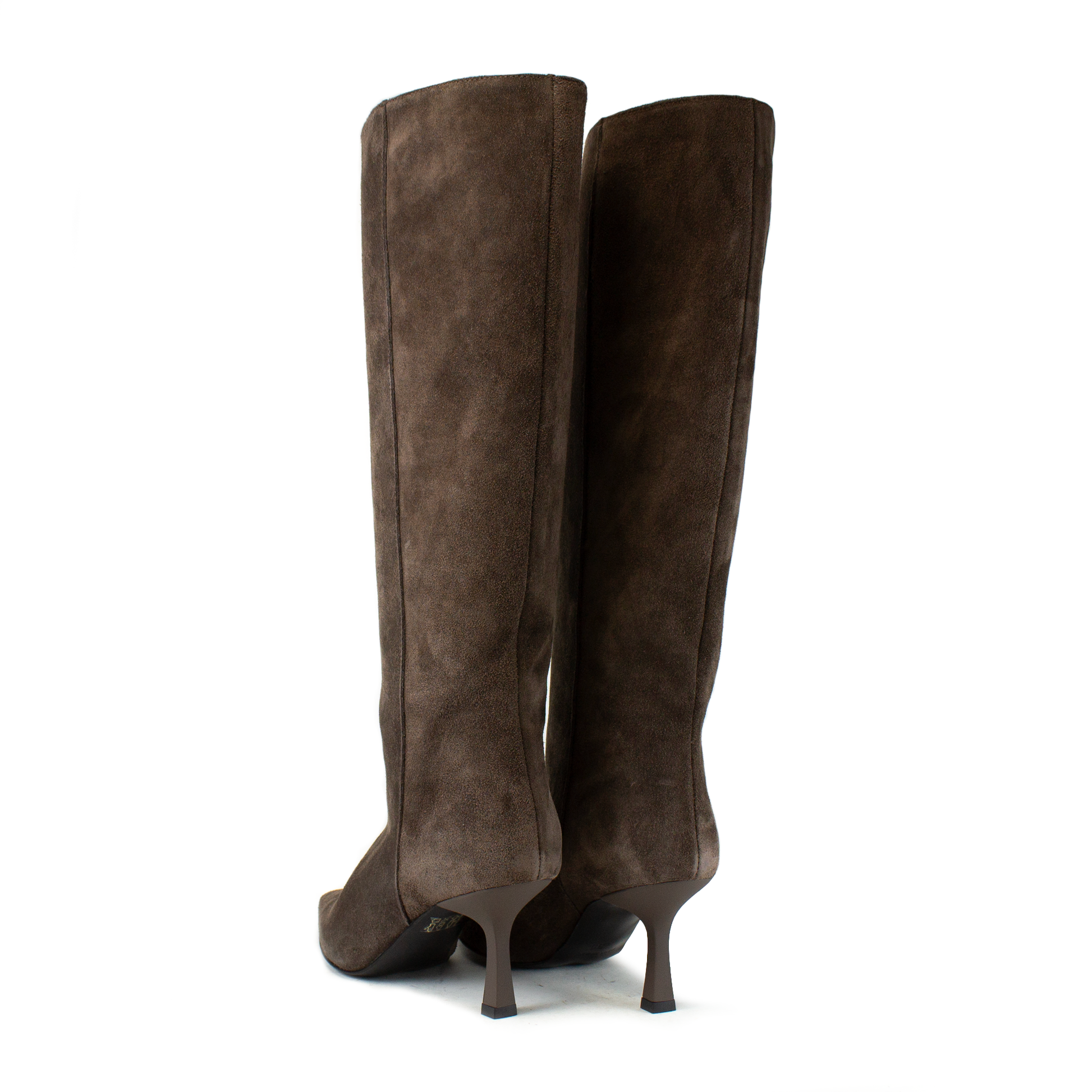 Realizzato per la donna che non vuole rinunciare a stile e raffinatezza, questo stivale incarna la quintessenza dell'artigianalità italiana. Il suo design dritto e pulito slancia la figura, mentre la morbida pelle scamosciata in una versatile tonalità di marrone avvolge la gamba con un comfort ineguagliabile.