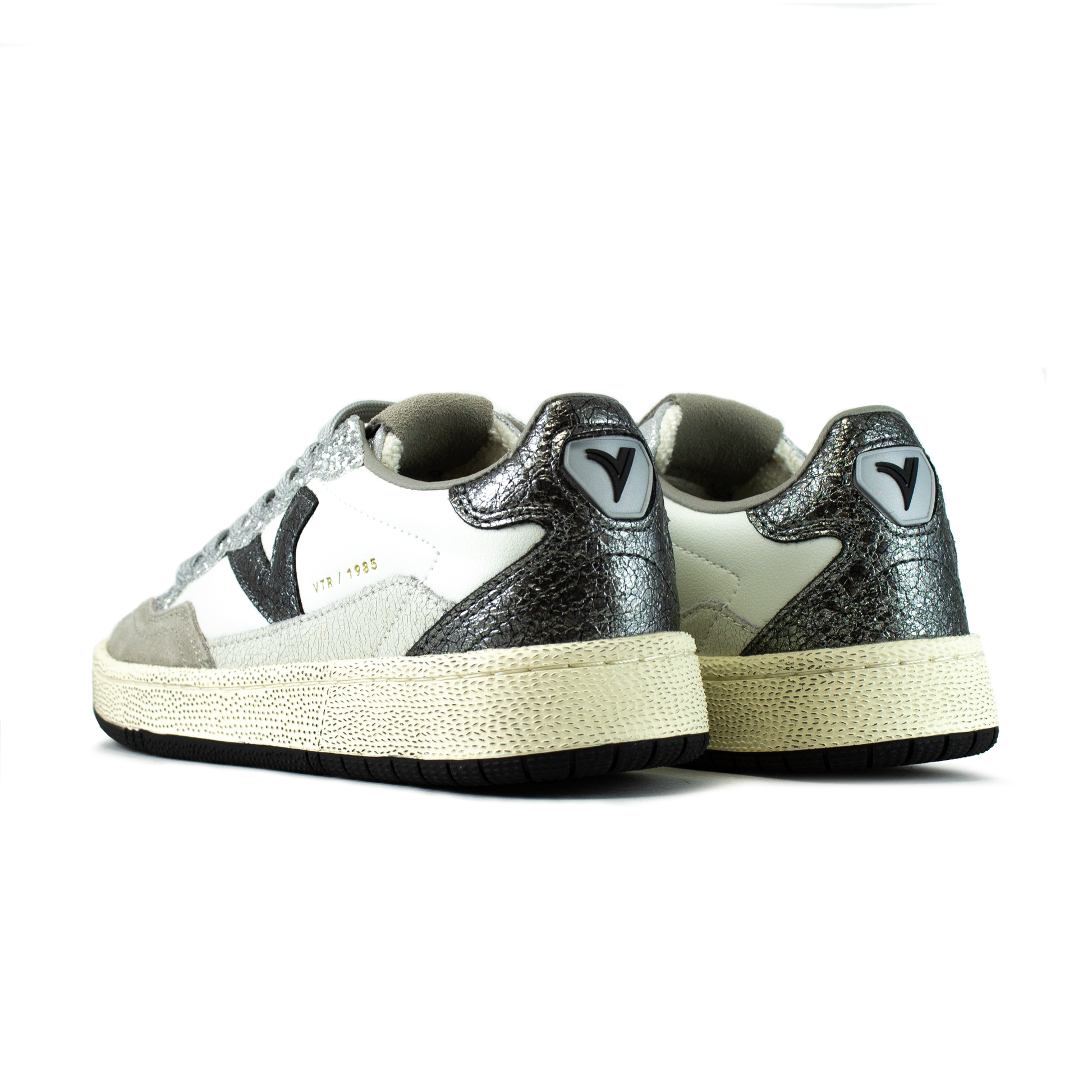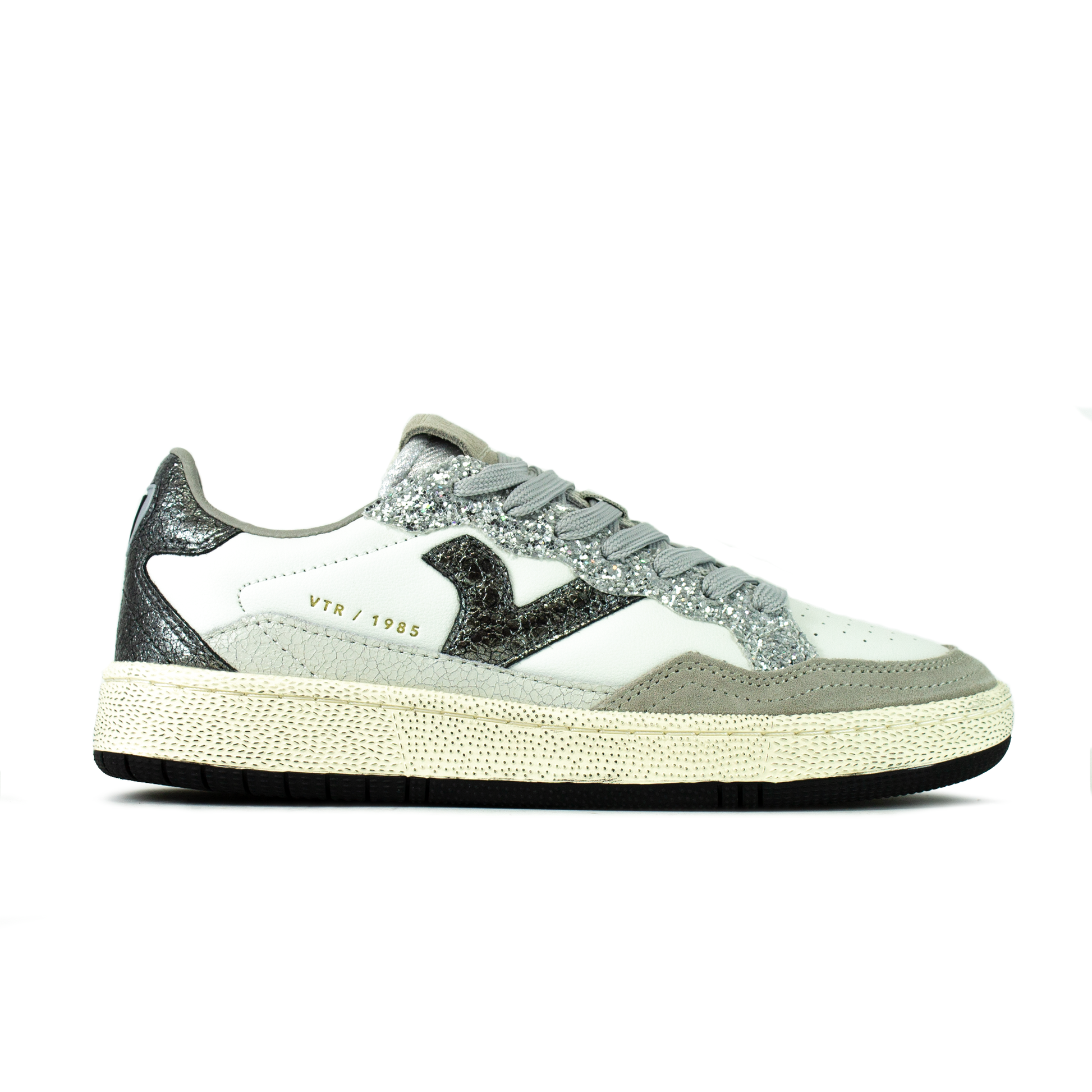 Dal gusto vintage e molto comode, così sono le sneakers da donna SMASH-GLITTER della collezione 1985. Realizzate in pelle bovina con inserti in crosta di pelle bovina, glitter e microfibra metalizzata. Incisione della collezione in oro sul lato e etichetta in gomma in rilievo sul retro. Suola in gomma leggermente ambrata con texture ruvida. Includono una soletta ergonomica che si adatta alla forma del piede regalando una sensazione di comfort.
