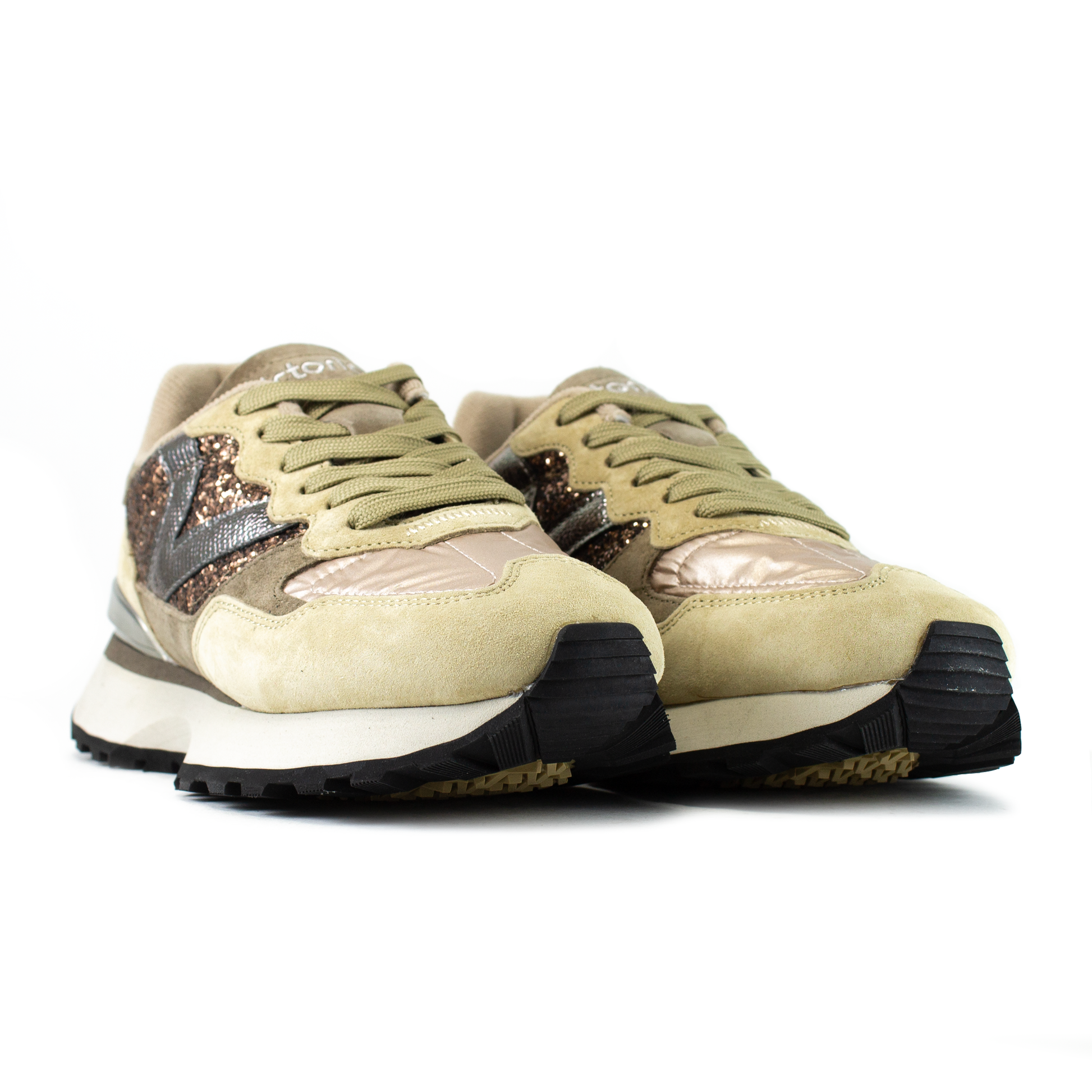 - Tomaia in nylon oro e suede marrone