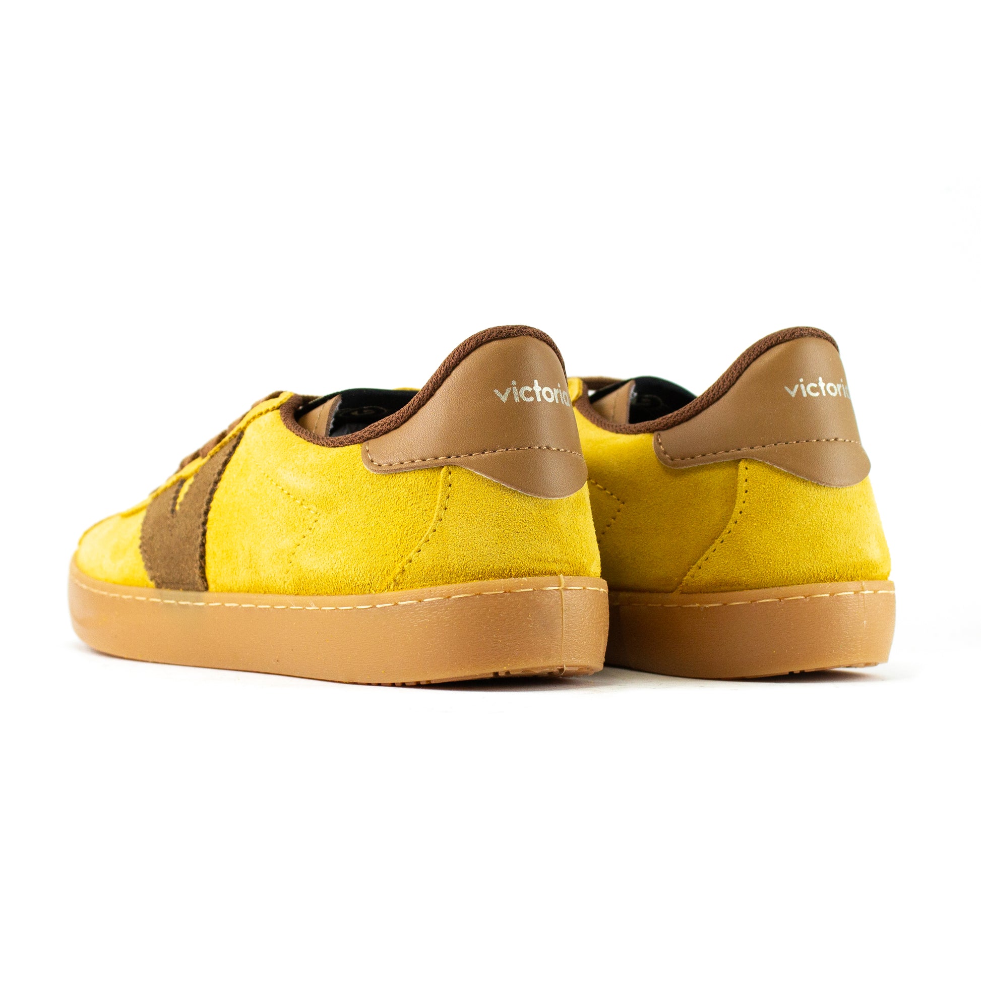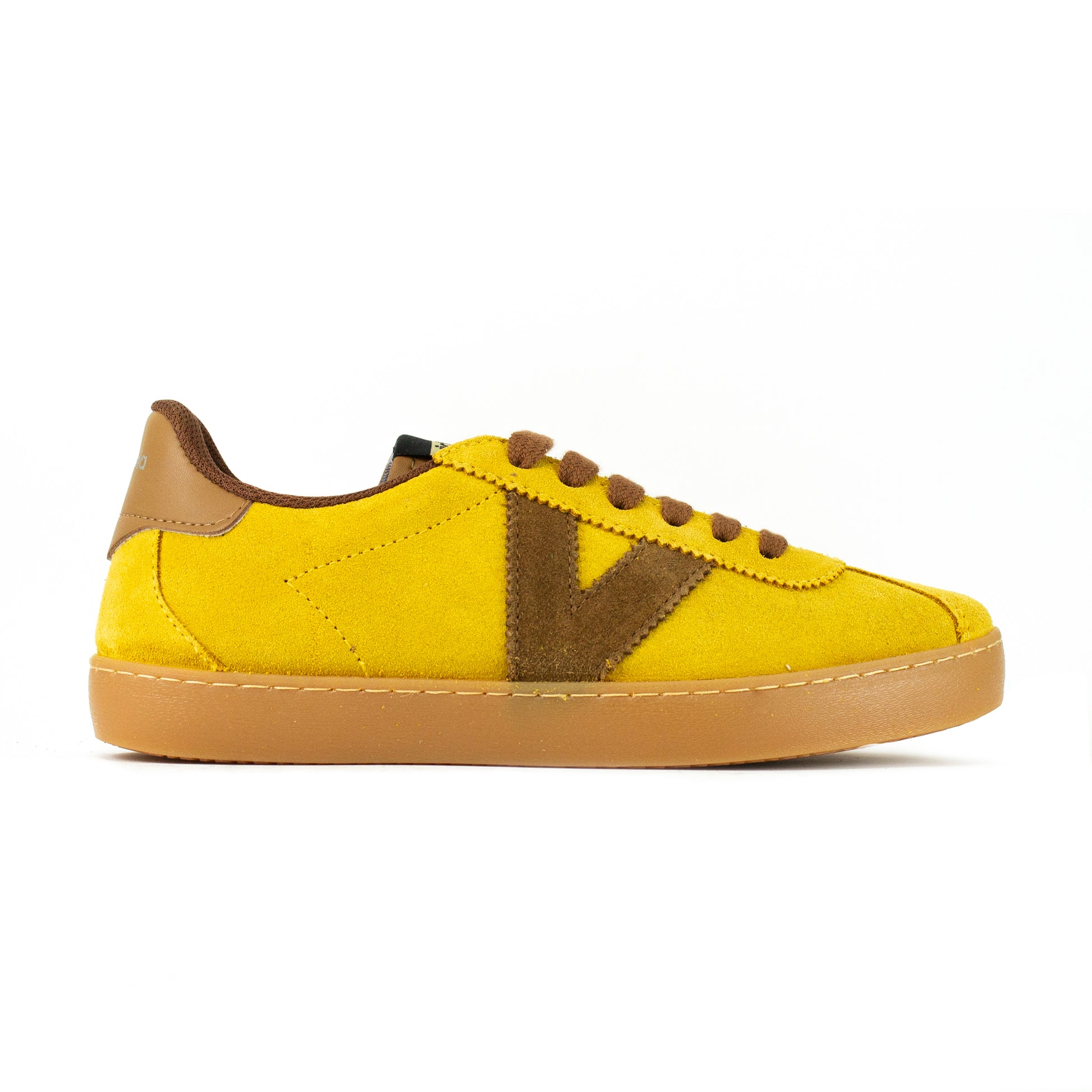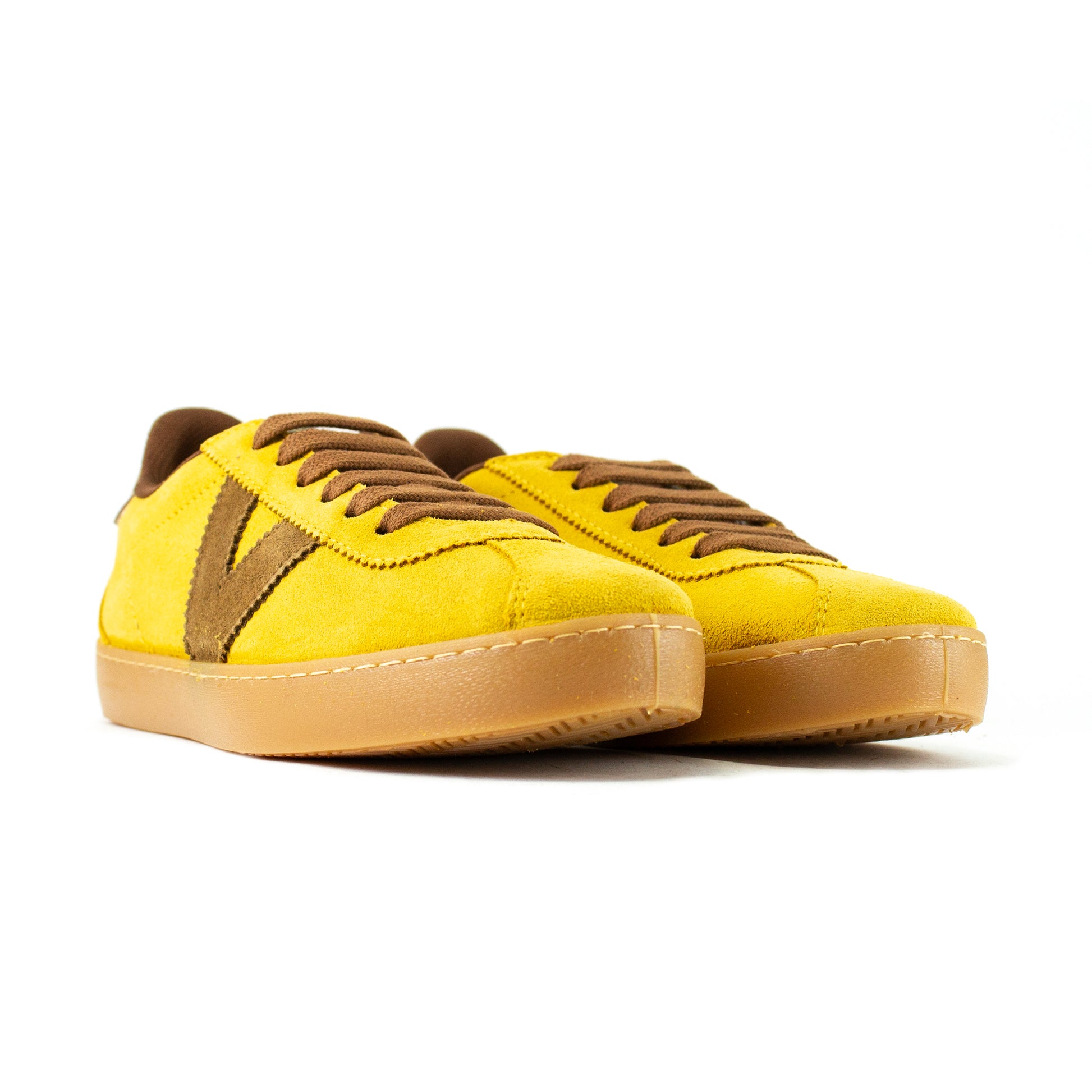 - Tomaia in pelle crosta gialla effetto camoscio certificata LWG (Leather Working Group), che garantisce un processo di concia responsabile, con un uso efficiente di acqua, energia e una gestione sostenibile dei rifiuti, e materiali sintetici.