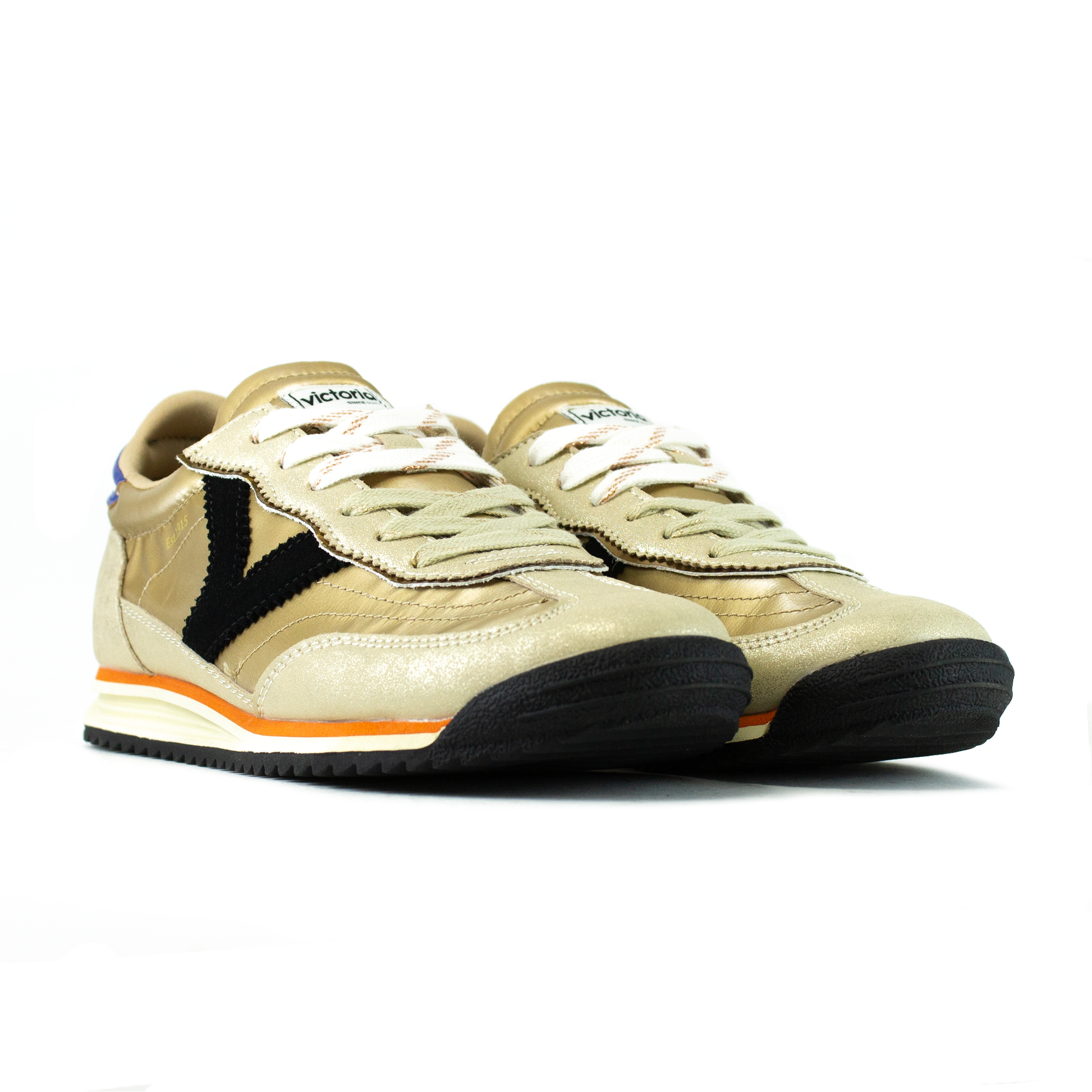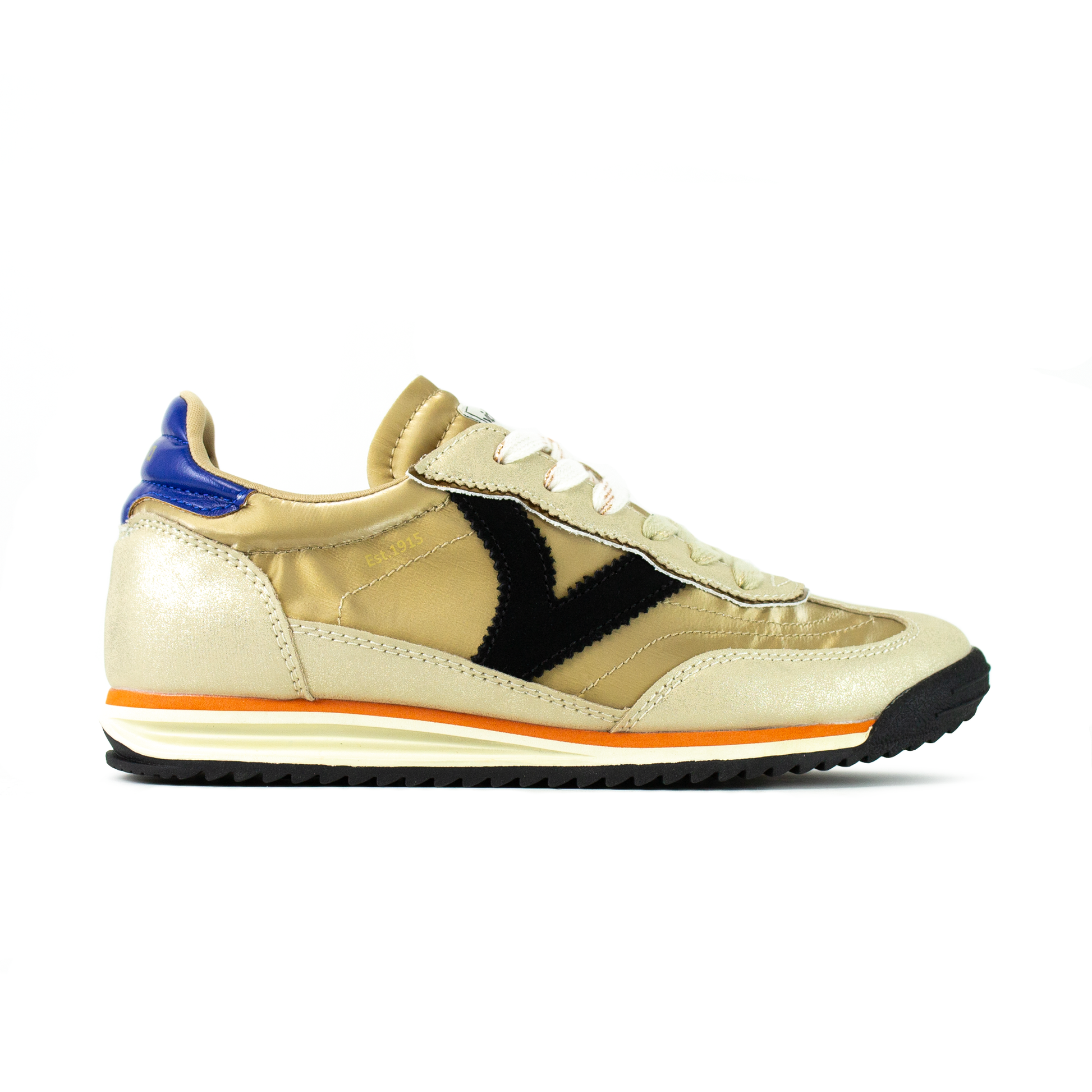- Tomaia in nylon e simil-pelle laminata oro
